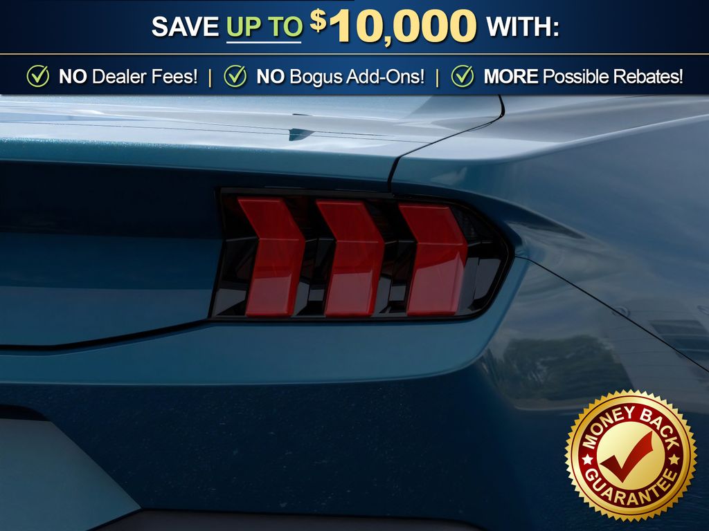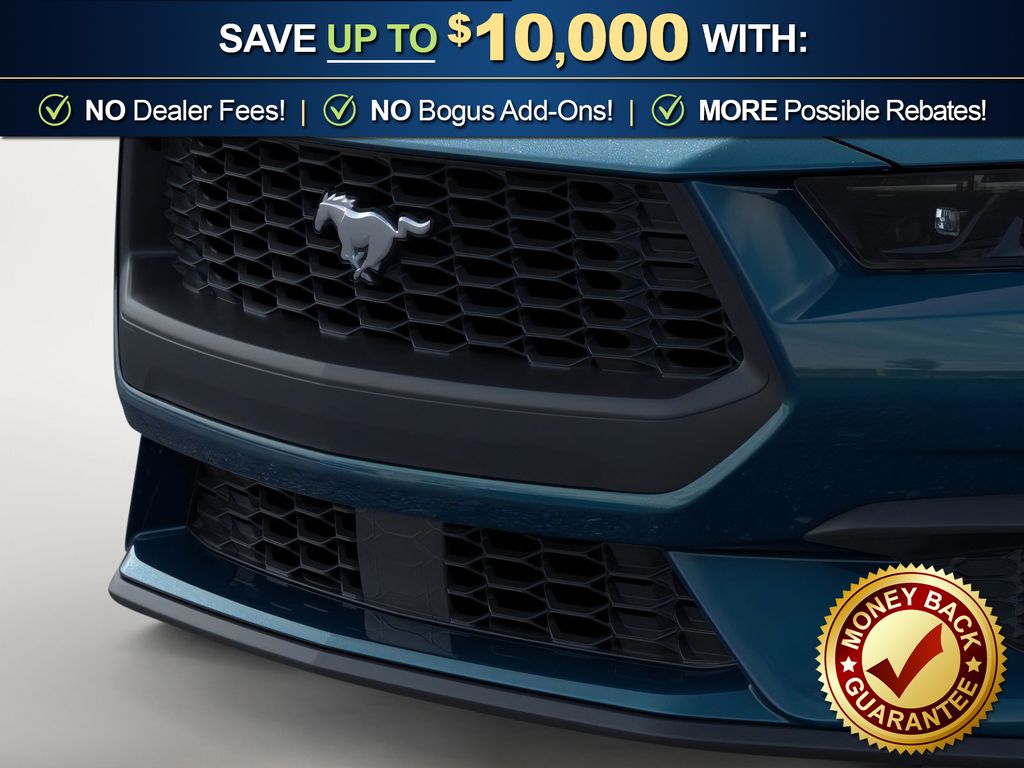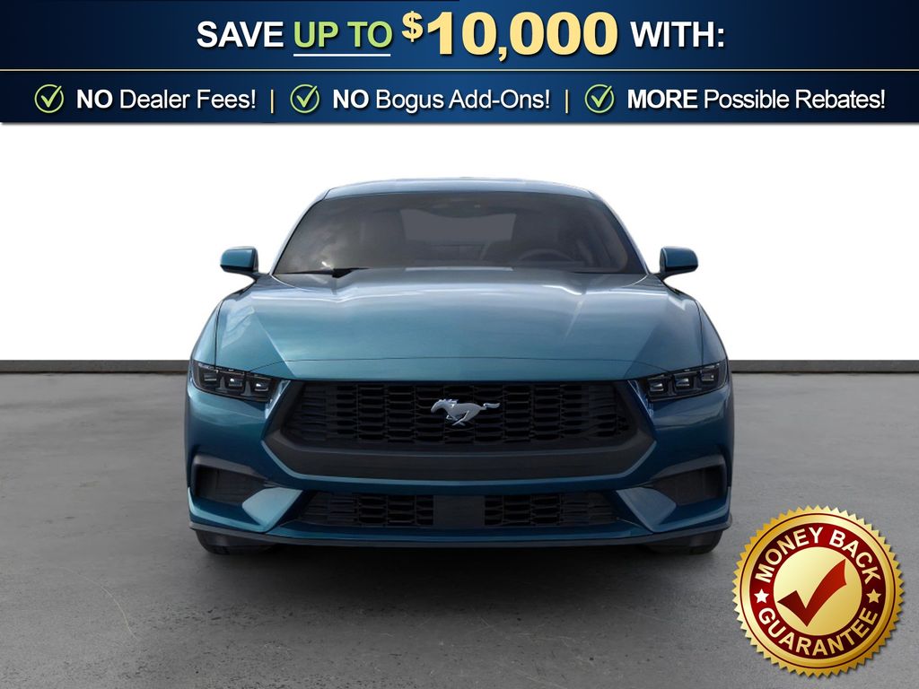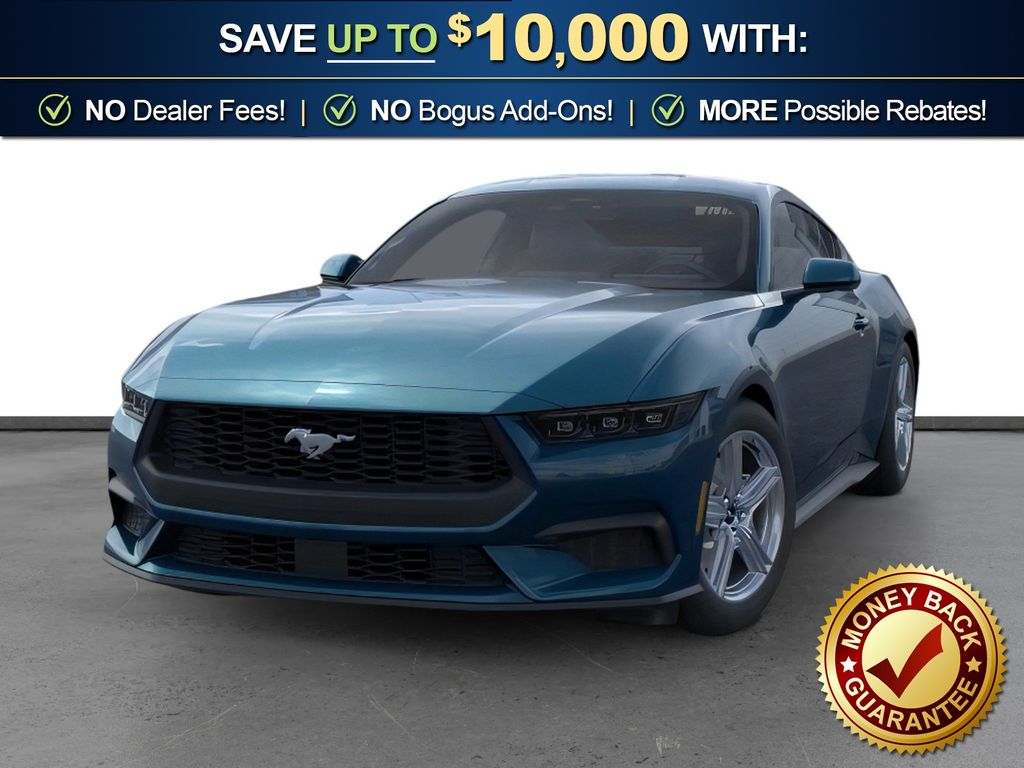 Dealer Discount of $1,576 off MSRP Adriatic Blue Metallic 2026 Ford Mustang NFC RWD 10-Speed Automatic EcoBoost 2.3L I4 GTDi DOHC Turbocharged VCT 1st Row Carpeted Black Floor Mats, 4-Wheel Disc Brakes, ABS brakes, Air Conditioning, Alloy wheels, AM/FM Stereo, Auto High-beam Headlights, Automatic temperature control, Brake assist, Bumpers: body-color, Compass, Delay-off headlights, Driver door bin, Driver vanity mirror, Dual front impact airbags, Dual front side impact airbags, Electronic Stability Control, Emergency communication system: 911 Assist, Exterior Parking Camera Rear, Four wheel independent suspension, Front anti-roll bar, Front Bucket Seats, Front Center Armrest, Front dual zone A/C, Front reading lights, Fully automatic headlights, Illuminated entry, Knee airbag, Leather Shift Knob, Low tire pressure warning, Occupant sensing airbag, Outside temperature display, Overhead airbag, Overhead console, Panic alarm, Passenger door bin, Passenger vanity mirror, Power door mirrors, Power steering, Power windows, Radio data system, Rain sensing wipers, Rear anti-roll bar, Rear Parking Sensors, Rear window defroster, Remote keyless entry, Speed control, Speed-sensing steering, Speed-Sensitive Wipers, Split folding rear seat, Sport steering wheel, Steering wheel mounted audio controls, SYNC 4, Tachometer, Telescoping steering wheel, Tilt steering wheel, Traction control, Trip computer, Variably intermittent wipers, Voltmeter, Wheels: 18" x 8" Painted Shadow Silver Cast Aluminum.