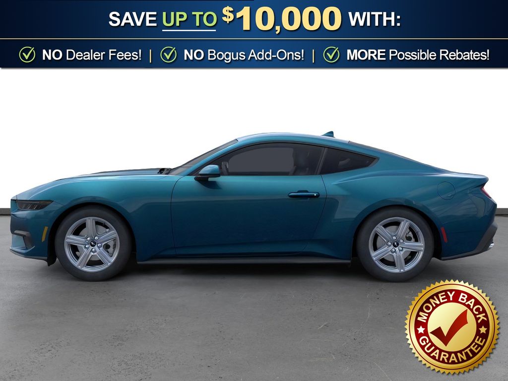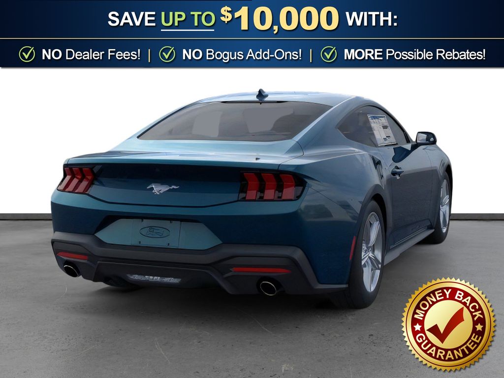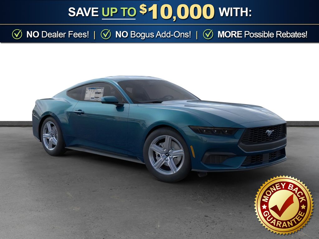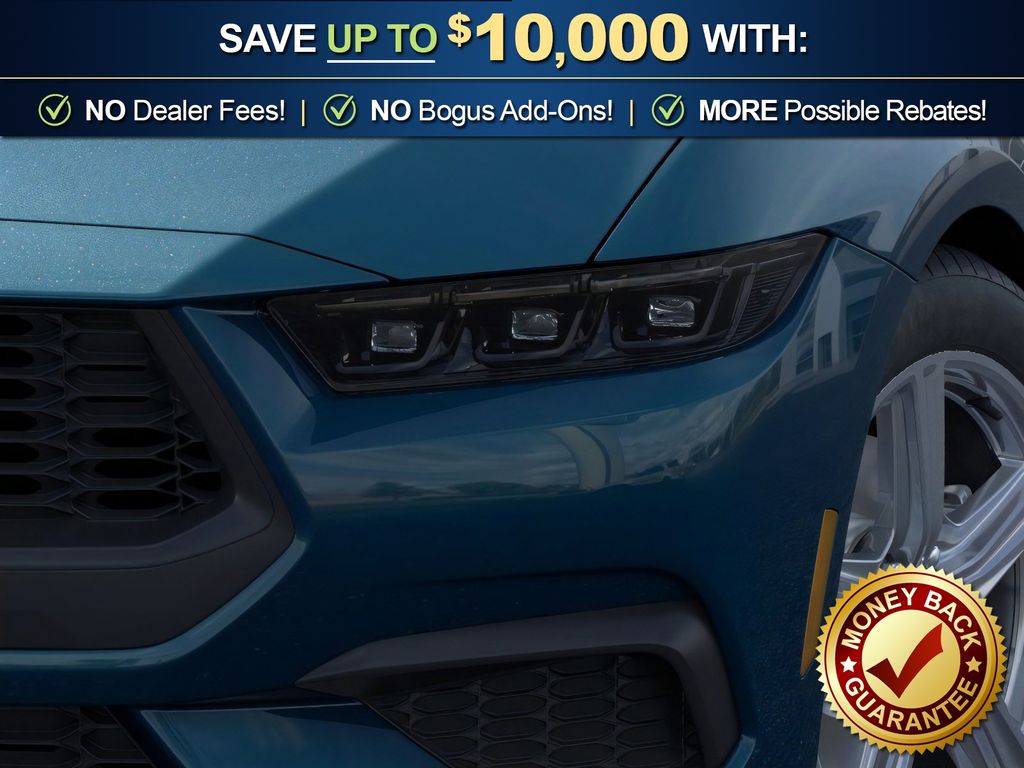 Dealer Discount of $1,576 off MSRP Adriatic Blue Metallic 2026 Ford Mustang NFC RWD 10-Speed Automatic EcoBoost 2.3L I4 GTDi DOHC Turbocharged VCT 1st Row Carpeted Black Floor Mats, 4-Wheel Disc Brakes, ABS brakes, Air Conditioning, Alloy wheels, AM/FM Stereo, Auto High-beam Headlights, Automatic temperature control, Brake assist, Bumpers: body-color, Compass, Delay-off headlights, Driver door bin, Driver vanity mirror, Dual front impact airbags, Dual front side impact airbags, Electronic Stability Control, Emergency communication system: 911 Assist, Exterior Parking Camera Rear, Four wheel independent suspension, Front anti-roll bar, Front Bucket Seats, Front Center Armrest, Front dual zone A/C, Front reading lights, Fully automatic headlights, Illuminated entry, Knee airbag, Leather Shift Knob, Low tire pressure warning, Occupant sensing airbag, Outside temperature display, Overhead airbag, Overhead console, Panic alarm, Passenger door bin, Passenger vanity mirror, Power door mirrors, Power steering, Power windows, Radio data system, Rain sensing wipers, Rear anti-roll bar, Rear Parking Sensors, Rear window defroster, Remote keyless entry, Speed control, Speed-sensing steering, Speed-Sensitive Wipers, Split folding rear seat, Sport steering wheel, Steering wheel mounted audio controls, SYNC 4, Tachometer, Telescoping steering wheel, Tilt steering wheel, Traction control, Trip computer, Variably intermittent wipers, Voltmeter, Wheels: 18" x 8" Painted Shadow Silver Cast Aluminum.