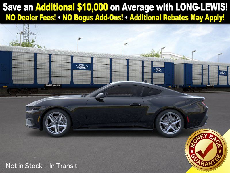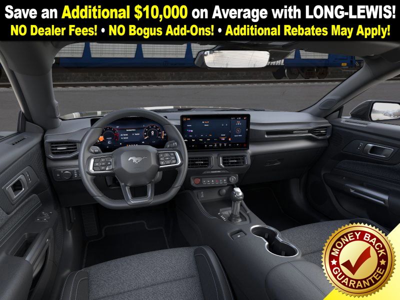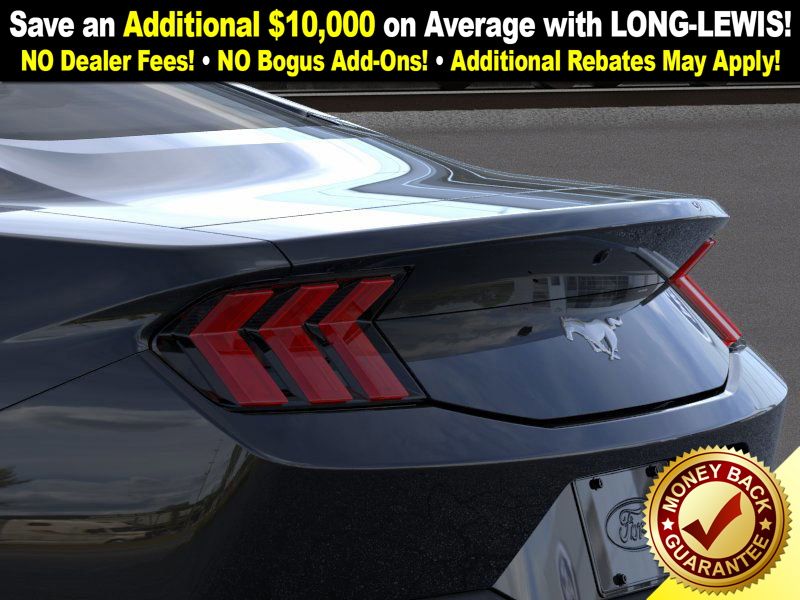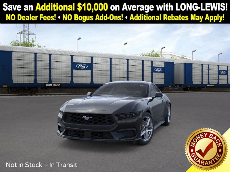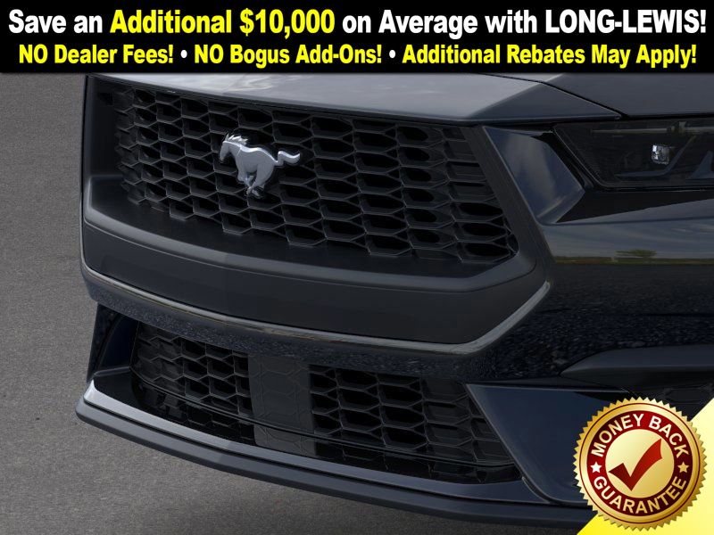Shadow Black 2026 Ford Mustang NFC RWD 10-Speed Automatic EcoBoost 2.3L I4 GTDi DOHC Turbocharged VCT 1st Row Carpeted Black Floor Mats, 4-Wheel Disc Brakes, ABS brakes, Air Conditioning, Alloy wheels, AM/FM Stereo, Auto High-beam Headlights, Automatic temperature control, Brake assist, Bumpers: body-color, Compass, Delay-off headlights, Driver door bin, Driver vanity mirror, Dual front impact airbags, Dual front side impact airbags, Electronic Stability Control, Emergency communication system: 911 Assist, Exterior Parking Camera Rear, Four wheel independent suspension, Front anti-roll bar, Front Bucket Seats, Front Center Armrest, Front dual zone A/C, Front reading lights, Fully automatic headlights, Illuminated entry, Internet access capable: FordPass Connect, Knee airbag, Leather Shift Knob, Low tire pressure warning, Occupant sensing airbag, Outside temperature display, Overhead airbag, Overhead console, Panic alarm, Passenger door bin, Passenger vanity mirror, Power door mirrors, Power steering, Power windows, Radio data system, Rain sensing wipers, Rear anti-roll bar, Rear Parking Sensors, Rear window defroster, Remote keyless entry, Speed control, Speed-sensing steering, Speed-Sensitive Wipers, Split folding rear seat, Sport steering wheel, Steering wheel mounted audio controls, SYNC 4, Tachometer, Telescoping steering wheel, Tilt steering wheel, Traction control, Trip computer, Variably intermittent wipers, Voltmeter, Wheels: 18" x 8" Painted Shadow Silver Cast Alum, Wheels: 19" x 8.5" Premier Polished Aluminum.