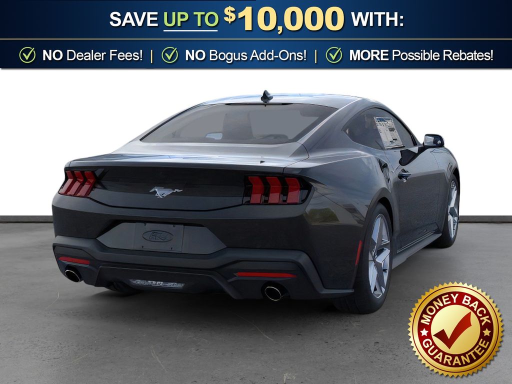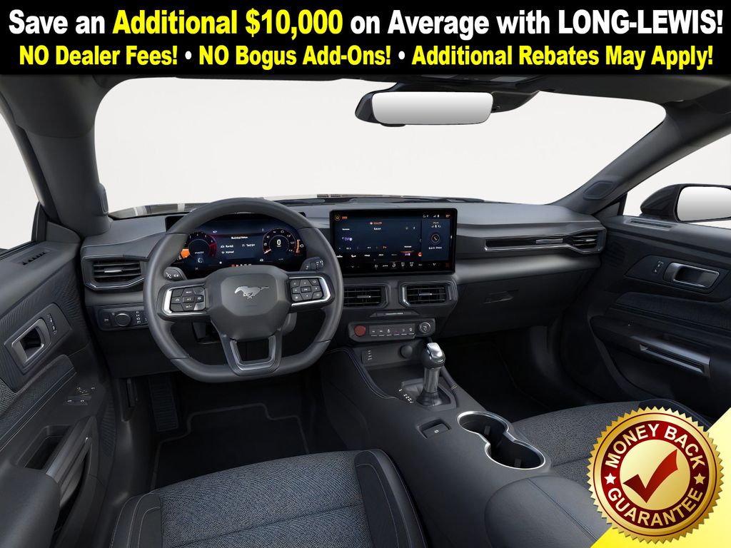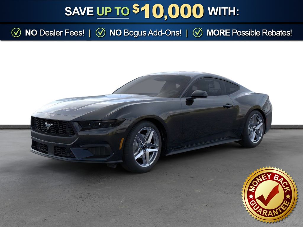 Shadow Black 2026 Ford Mustang NFC RWD 10-Speed Automatic EcoBoost 2.3L I4 GTDi DOHC Turbocharged VCT 1st Row Carpeted Black Floor Mats, 4-Wheel Disc Brakes, ABS brakes, Air Conditioning, Alloy wheels, AM/FM Stereo, Auto High-beam Headlights, Automatic temperature control, Brake assist, Bumpers: body-color, Compass, Delay-off headlights, Driver door bin, Driver vanity mirror, Dual front impact airbags, Dual front side impact airbags, Electronic Stability Control, Emergency communication system: 911 Assist, Exterior Parking Camera Rear, Four wheel independent suspension, Front anti-roll bar, Front Bucket Seats, Front Center Armrest, Front dual zone A/C, Front reading lights, Fully automatic headlights, Illuminated entry, Knee airbag, Leather Shift Knob, Low tire pressure warning, Occupant sensing airbag, Outside temperature display, Overhead airbag, Overhead console, Panic alarm, Passenger door bin, Passenger vanity mirror, Power door mirrors, Power steering, Power windows, Radio data system, Rain sensing wipers, Rear anti-roll bar, Rear Parking Sensors, Rear window defroster, Remote keyless entry, Speed control, Speed-sensing steering, Speed-Sensitive Wipers, Split folding rear seat, Sport steering wheel, Steering wheel mounted audio controls, SYNC 4, Tachometer, Telescoping steering wheel, Tilt steering wheel, Traction control, Trip computer, Variably intermittent wipers, Voltmeter, Wheels: 18" x 8" Painted Shadow Silver Cast Aluminum, Wheels: 19" x 8.5" Premier Polished Aluminum.