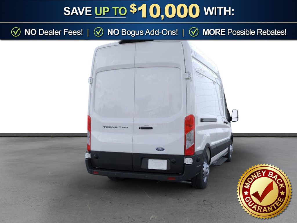 Oxford White 2026 Ford Transit-250 NFT RWD 10-Speed Automatic with Overdrive EcoBoost 3.5L V6 GTDi DOHC 24V Twin Turbocharged 2 Additional Keys (4 Total), 4 Speakers, 4-Wheel Disc Brakes, 6 Cargo Tie-Down Hooks, ABS brakes, Air Conditioning, AM/FM radio, AM/FM Stereo, Apple CarPlay/Android Auto, Auto High-beam Headlights, Brake assist, Cloth Front Bucket Seats, D-Pillar Assist Handles, Dark Palazzo Gray Vinyl Bucket Seats, Delay-off headlights, Driver door bin, Driver's Seat Mounted Armrest, Dual front impact airbags, Dual front side impact airbags, Electronic Stability Control, Emergency communication system: 911 Assist, Exterior Parking Camera Rear, Ford Connectivity Package (1-Year Included), Front and Rear Vinyl Floor Covering, Front anti-roll bar, Front Bucket Seats, Front License Plate Bracket, Front Overhead Shelf, Front reading lights, Front wheel independent suspension, Fully automatic headlights, Heavy-Duty Front Axle, Illuminated entry, Keyless Entry Keypad, Load Area Protection Package, Low tire pressure warning, Midship Extended Range Fuel Tank (31 Gallons), Navigation system: Connected Navigation, Occupant sensing airbag, Overhead airbag, Panic alarm, Passenger cancellable airbag, Passenger door bin, Passenger Running Boards, Power door mirrors, Power steering, Power windows, Rain sensing wipers, Remote keyless entry, Speed control, Steering wheel mounted audio controls, SYNC 4, Tachometer, Telescoping steering wheel, Tilt steering wheel, Traction control, Variably intermittent wipers, Vinyl Front Bucket Seats, Wheels: 16" Silver Steel with Black Hubcap, Wheels: 16" Silver Steel with Silver Hubcaps.