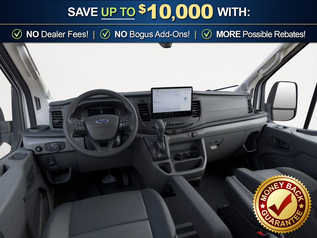 Oxford White 2026 Ford Transit-250 CMF RWD 10-Speed Automatic with Overdrive 3.5L V6 Flex Fuel 3.73 Axle Ratio, 4 Speakers, 4-Wheel Disc Brakes, ABS brakes, Air Conditioning, AM/FM radio, AM/FM Stereo, Apple CarPlay/Android Auto, Auto High-beam Headlights, Brake assist, Dark Palazzo Gray Vinyl Bucket Seats, Delay-off headlights, Driver door bin, Driver's Seat Mounted Armrest, Dual front impact airbags, Dual front side impact airbags, Electronic Stability Control, Emergency communication system: 911 Assist, Exterior Parking Camera Rear, Ford Connectivity Package (1-Year Included), Front anti-roll bar, Front Bucket Seats, Front reading lights, Front wheel independent suspension, Fully automatic headlights, Illuminated entry, Low tire pressure warning, Navigation system: Connected Navigation, Occupant sensing airbag, Overhead airbag, Panic alarm, Passenger cancellable airbag, Passenger door bin, Power door mirrors, Power steering, Power windows, Remote keyless entry, Speed control, Steering wheel mounted audio controls, SYNC 4, Tachometer, Telescoping steering wheel, Tilt steering wheel, Traction control, Variably intermittent wipers, Vinyl Front Bucket Seats.