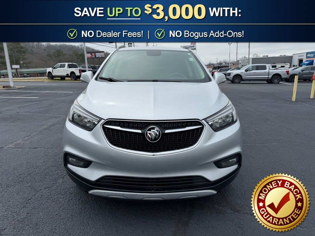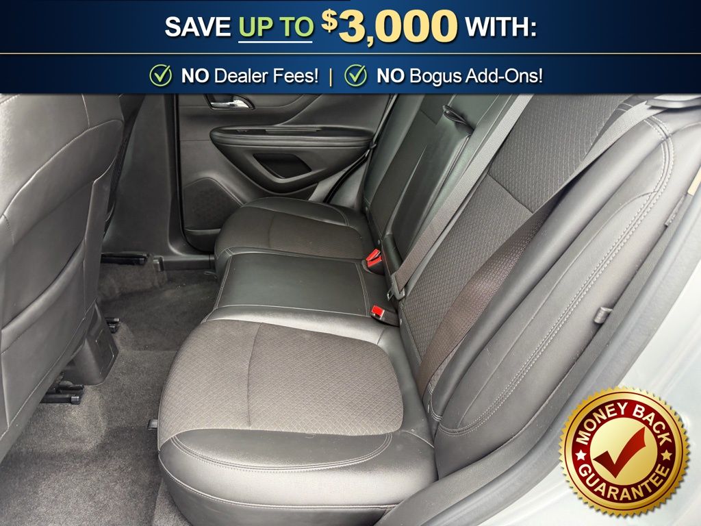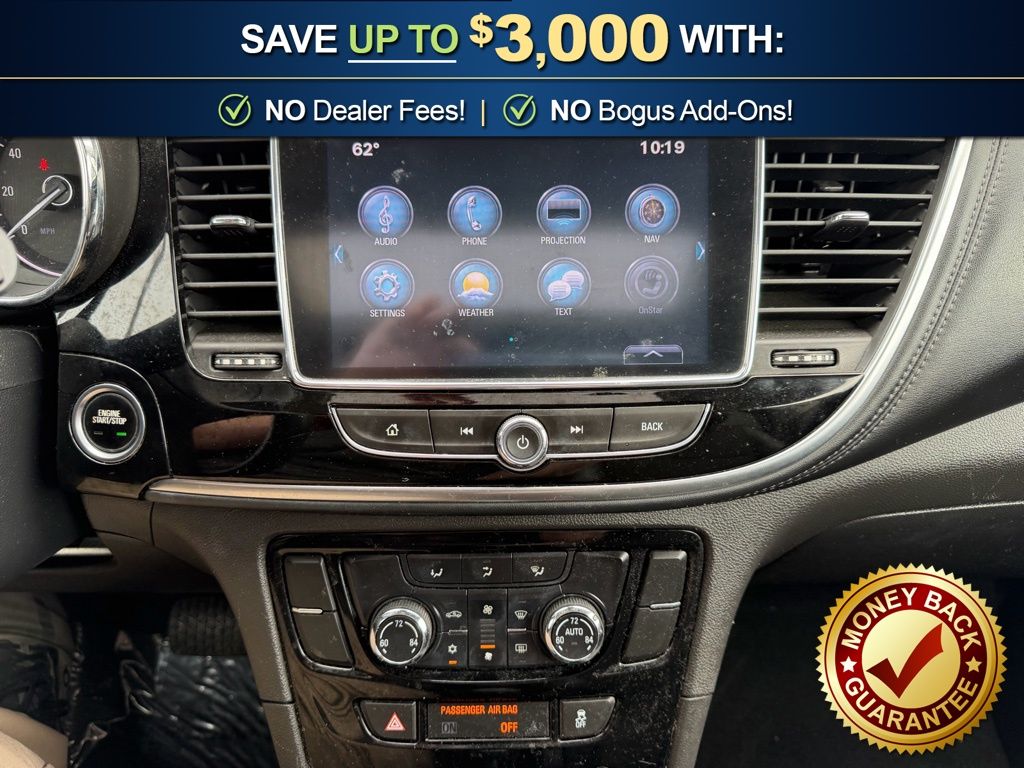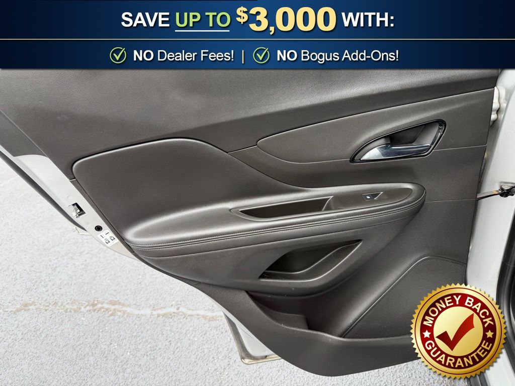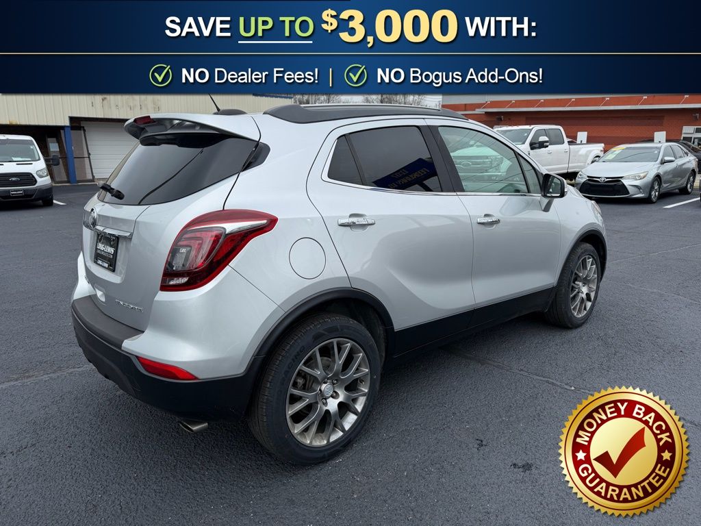 2-Way Manual Front Passenger Seat Adjuster, 3.53 Final Drive Axle Ratio, 4-Wheel Disc Brakes, 6 Speakers, 6-Way Power Driver Seat Adjuster, ABS brakes, Air Conditioning, All Weather Floor Mats, Alloy wheels, AM/FM radio: SiriusXM, Apple CarPlay/Android Auto, Auto-Dimming Inside Rear-View Mirror, Black Carbon Metallic Lower Exterior Accent Color, Brake assist, Bumpers: body-color, Cloth w/Leatherette Seat Trim, Compass, Delay-off headlights, Driver door bin, Driver vanity mirror, Driver's Seat Mounted Armrest, Dual front impact airbags, Dual front side impact airbags, Dual-Zone Automatic Climate Control, Electronic Stability Control, Emergency communication system: OnStar Guidance, Exterior Parking Camera Rear, Front anti-roll bar, Front Bucket Seats, Front Fog Lamps, Front fog lights, Front License Plate Bracket, Front reading lights, Front wheel independent suspension, Fully automatic headlights, Heated door mirrors, Illuminated entry, Knee airbag, Low tire pressure warning, Occupant sensing airbag, Outside temperature display, Overhead airbag, Panic alarm, Passenger door bin, Passenger vanity mirror, Power door mirrors, Power driver seat, Power steering, Power Tilt-Sliding Moonroof, Power windows, Preferred Equipment Group 1SH, Premium audio system: IntelliLink, Radio data system, Radio: Buick IntelliLink AM/FM Stereo, Radio: Buick IntelliLink AM/FM Stereo w/Navigation, Rear seat center armrest, Rear side impact airbag, Rear Sport Spoiler, Rear window defroster, Rear window wiper, Remote keyless entry, Remote Vehicle Starter System, Ride & Handling Suspension, Roof rack: rails only, Security system, SiriusXM Satellite Radio, Speed control, Speed-sensing steering, Split folding rear seat, Spoiler, Steering wheel mounted audio controls, Tachometer, Telescoping steering wheel, Tilt steering wheel, Traction control, Trip computer, Turn signal indicator mirrors, Variably intermittent wipers, Wheels: 18" Midnight Silver Aluminum Alloy. 2017 Buick Encore Sport Touring