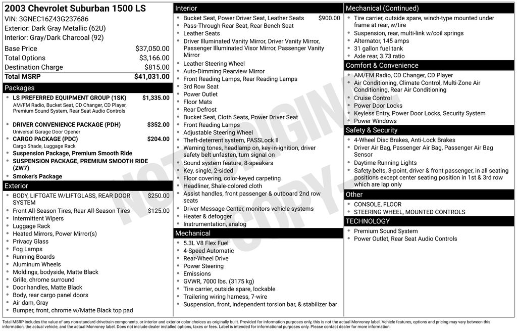 2003 Chevrolet Suburban 1500 LS SUV Vortec V8 SFI Bi-Fuel