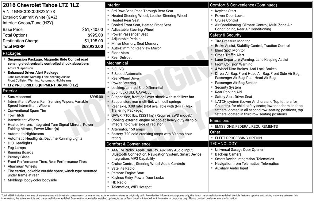 2016 Chevrolet Tahoe LTZ SUV EcoTec3 V8