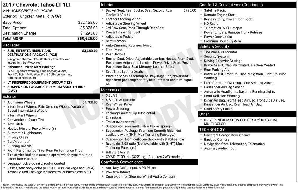 2017 Chevrolet Tahoe LT RWD 6-Speed Automatic Electronic with Overdrive EcoTec3 5.3L V8 Tungsten Metallic