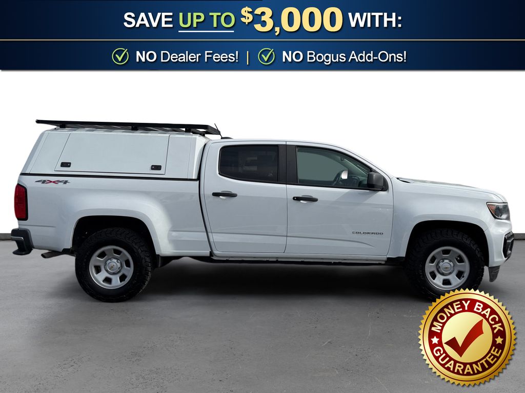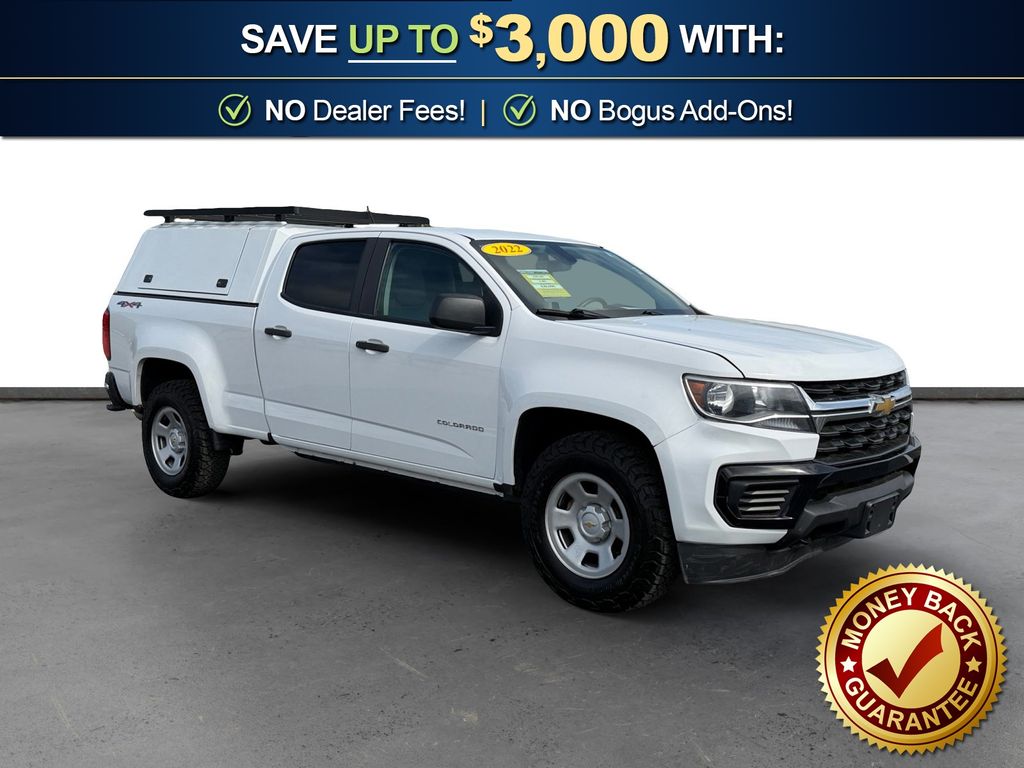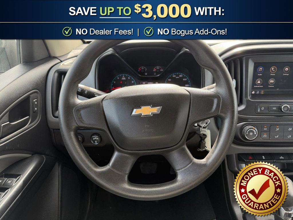 4WD, 3.42 Rear Axle Ratio, 4-Wheel Disc Brakes, 6 Speakers, 6-Speaker Audio System Feature, ABS brakes, Air Conditioning, AM/FM radio: SiriusXM, Apple CarPlay/Android Auto, Bumpers: body-color, Delay-off headlights, Driver 4-Way Power Seat Adjuster, Driver door bin, Dual front impact airbags, Dual front side impact airbags, Electronic Stability Control, Exterior Parking Camera Rear, Front anti-roll bar, Front Bucket Seats, Front Center Armrest, Front License Plate Kit, Front wheel independent suspension, Fully automatic headlights, Low tire pressure warning, Occupant sensing airbag, Overhead airbag, Passenger door bin, Passenger vanity mirror, Power driver seat, Power steering, Power windows, Preferred Equipment Group 4WT, Premium audio system: Chevrolet Infotainment 3, Radio data system, Radio: Chevrolet Infotainment 3 System, Rear seat center armrest, Rear step bumper, SiriusXM Radio, Speed-sensing steering, Tachometer, Tilt steering wheel, Traction control, Trip computer, Variably intermittent wipers, Vinyl Seat Trim, Wheels: 17" x 8" Ultra Silver Metallic Steel, 4WD. 2022 Chevrolet Colorado Work Truck