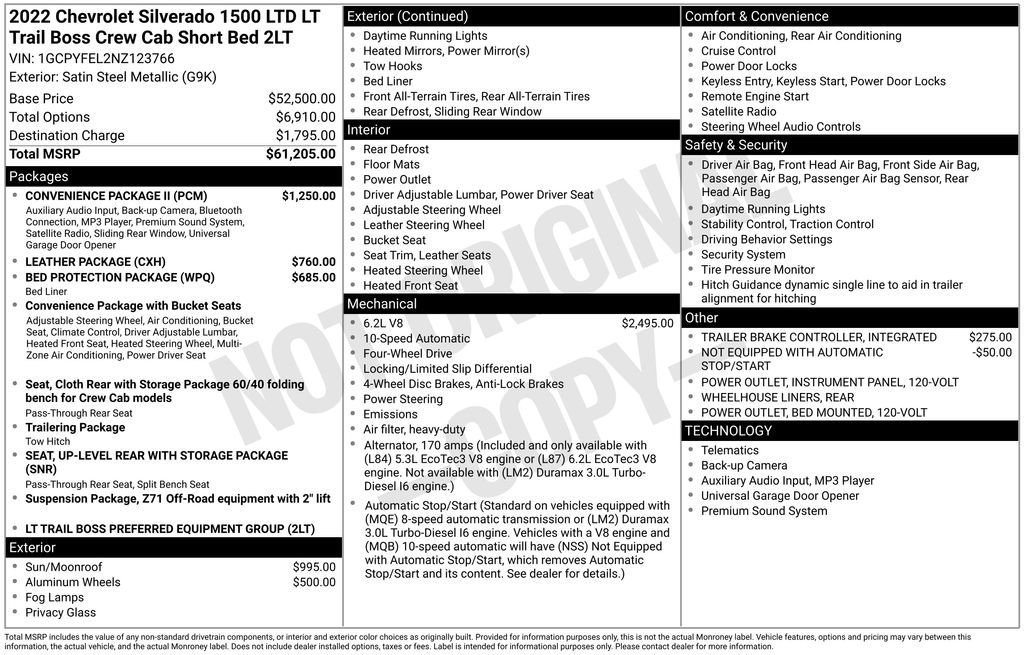 2nd day of owning,battery dead.Said cuz I left trailer plugged in.7th day battery dead and engine light on.Service checked and found no issue.On way home radio comes on and off,auto stop not working,skipping badly.They replaced a burnt wire.Back at shop now for 9 days ,found nothing wrong.Between wife and I have had chevys for 40 years all high end.This will be 17 days in shop out of owning it for 35.....sick about it. - 5.0