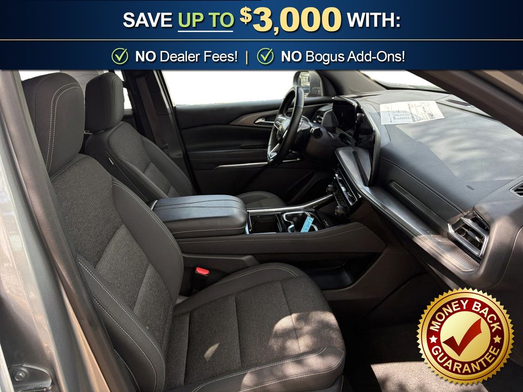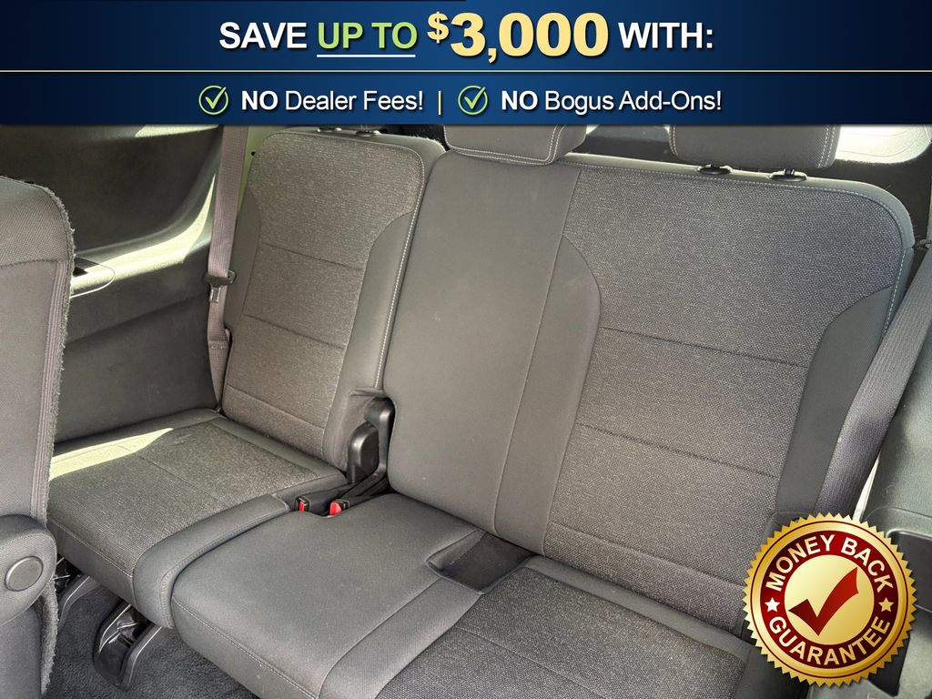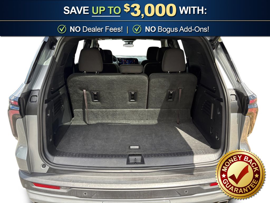 3rd row seats: split-bench, 4-Way Manual Front Passenger Seat Adjuster, 4-Wheel Disc Brakes, 6 Speakers, 6-Speaker Audio System Feature, 8-Way Power Driver Seat Adjuster, ABS brakes, Air Conditioning, Alloy wheels, AM/FM radio: SiriusXM with 360L, Apple CarPlay/Android Auto, Auto High-beam Headlights, Automatic temperature control, Brake assist, Bumpers: body-color, Compass, Delay-off headlights, Driver 4-Way Power Lumbar Seat Adjuster, Driver door bin, Driver vanity mirror, Dual front impact airbags, Dual front side impact airbags, Electronic Stability Control, Emergency communication system, Exterior Parking Camera Rear, Four wheel independent suspension, Front anti-roll bar, Front Bucket Seats, Front Center Armrest, Front dual zone A/C, Front reading lights, Fully automatic headlights, Heated door mirrors, Heated front seats, Heated steering wheel, Illuminated entry, Low tire pressure warning, Navigation System, Occupant sensing airbag, Outside temperature display, Overhead airbag, Overhead console, Panic alarm, Passenger door bin, Passenger vanity mirror, Power door mirrors, Power driver seat, Power Liftgate, Power steering, Power windows, Preferred Equipment Group 1LT, Premium Cloth Seat Trim, Radio data system, Radio: 17.7" Diagonal Display, Rear air conditioning, Rear anti-roll bar, Rear reading lights, Rear window defroster, Rear window wiper, Remote keyless entry, Security system, SiriusXM w/360L, Speed control, Speed-sensing steering, Spoiler, Steering wheel mounted audio controls, Tachometer, TBD Axle Ratio, Telescoping steering wheel, Tilt steering wheel, Traction control, Trip computer, Turn signal indicator mirrors, Variably intermittent wipers, Voltmeter, Wheels: 18" Grazen Metallic Machined-Face Aluminum.