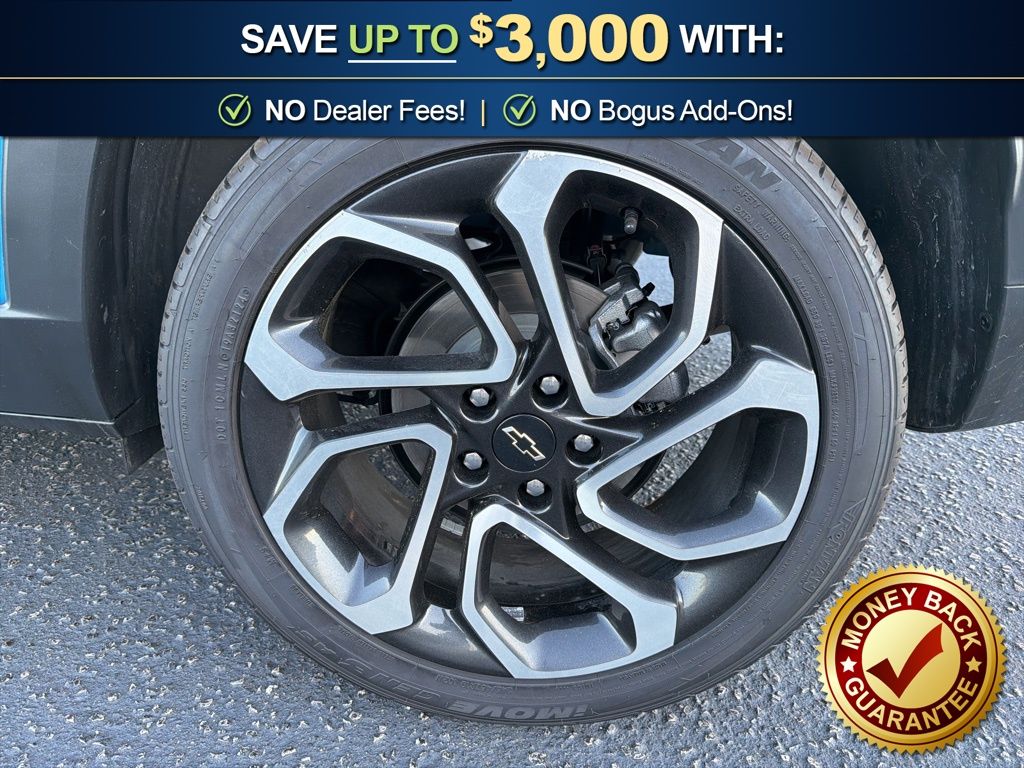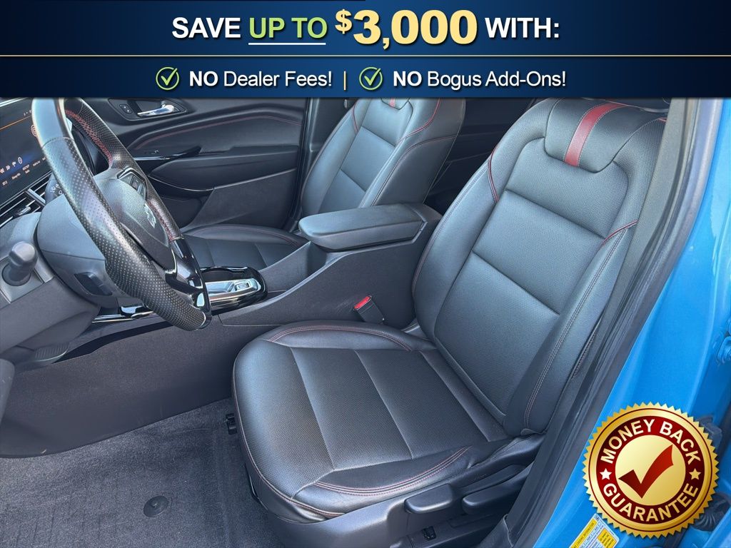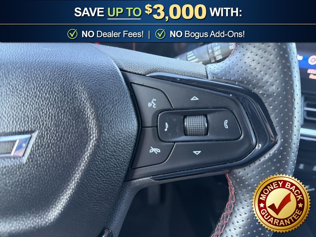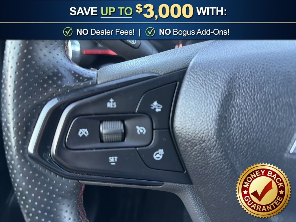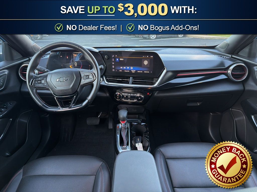 2-Way Adjustable Front Head Restraints, 2-Way Power Driver Lumbar Seat Adjuster, 3.50 Final Drive Axle Ratio, 4-Way Manual Front Passenger Seat Adjuster, 4-Wheel Disc Brakes, 6 Speakers, 6-Speaker Audio System Feature, 6-Way Manual Driver Seat Adjuster, 8-Way Power Driver Seat Adjuster, ABS brakes, Adaptive Cruise Control, Air Conditioning, Alloy wheels, AM/FM radio: SiriusXM, Auto High-beam Headlights, Automatic temperature control, Brake assist, Bumpers: body-color, Compass, Delay-off headlights, Driver Confidence Package, Driver door bin, Driver vanity mirror, Dual front impact airbags, Dual front side impact airbags, Electronic Stability Control, Emergency communication system: OnStar One Essentials, Evotex Seat Trim, Exterior Parking Camera Rear, Front and Rear All-Weather Floor Liners, Front anti-roll bar, Front Bucket Seats, Front Center Armrest, Front reading lights, Front wheel independent suspension, Fully automatic headlights, Heated door mirrors, Heated Driver and Front Passenger Seats, Heated front seats, Heated steering wheel, Illuminated entry, Interior Protection Package, Jet Black Cargo Liner, Lane Change Alert with Side Blind Zone Alert, Leather steering wheel, Low tire pressure warning, Occupant sensing airbag, Outside temperature display, Overhead airbag, Overhead console, Panic alarm, Passenger door bin, Passenger vanity mirror, Power door mirrors, Power steering, Power windows, Preferred Equipment Group 2RS, Premium audio system: Chevrolet Infotainment 3, Radio data system, Radio: AM/FM Stereo Audio System, Rear Cross-Traffic Alert, Rear Park Assist, Rear window defroster, Rear window wiper, Remote keyless entry, Security system, SiriusXM Trial Subscription, Speed control, Split folding rear seat, Spoiler, Sport steering wheel, Steering wheel mounted audio controls, Tachometer, Telescoping steering wheel, Tilt steering wheel, Traction control, Trip computer, Variably intermittent wipers, Wheels: 19" Black-Painted Machined Aluminum. 2025 Chevrolet Trax 2RS