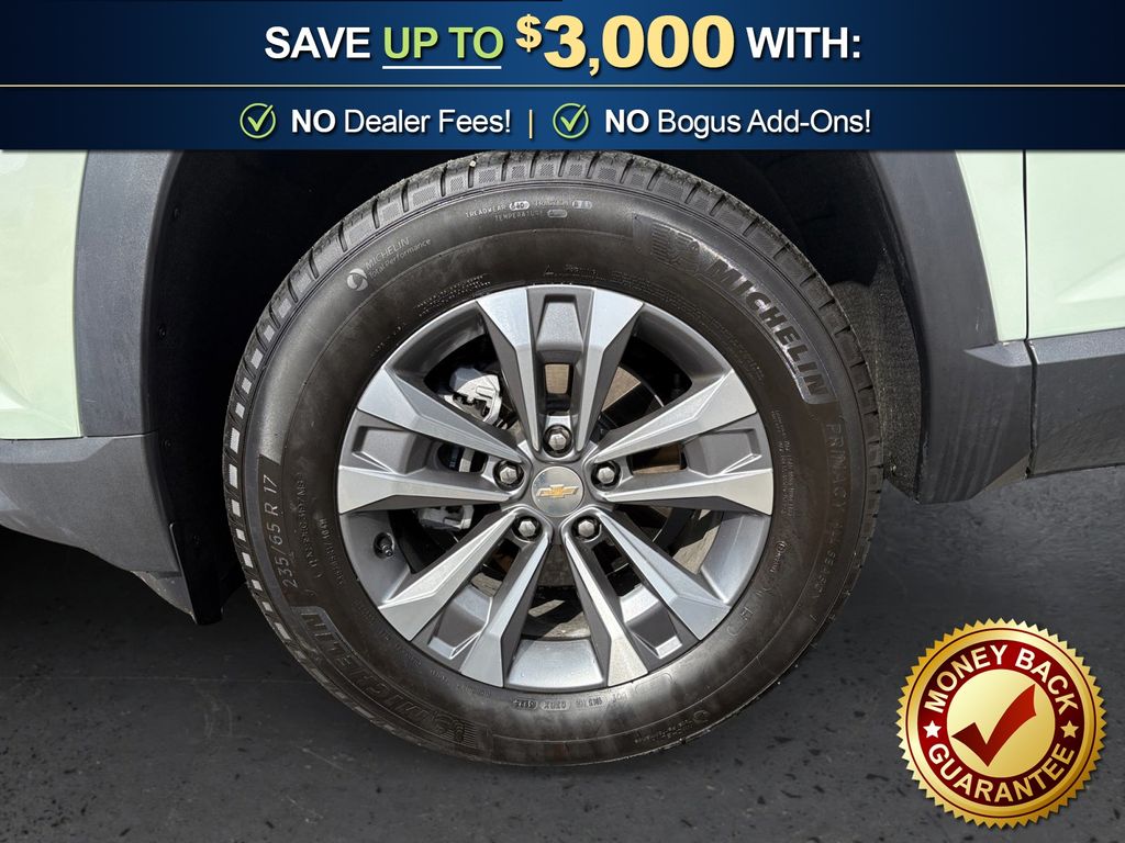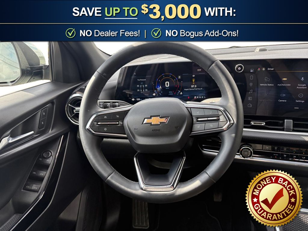 AWD, 3.47 Final Drive Axle Ratio, 4-Wheel Disc Brakes, 6 Speakers, ABS brakes, Air Conditioning, Alloy wheels, AM/FM radio: SiriusXM, Auto High-beam Headlights, Brake assist, Bumpers: body-color, Cloth Seat Trim, Compass, Delay-off headlights, Driver 6-Way Manual Seat Adjuster, Driver door bin, Driver vanity mirror, Dual front impact airbags, Dual front side impact airbags, Electronic Stability Control, Emergency communication system: OnStar and Chevrolet connected services capable, Four wheel independent suspension, Front anti-roll bar, Front Bucket Seats, Front Center Armrest, Front Passenger 4-Way Manual Seat Adjuster, Front reading lights, Fully automatic headlights, Heated door mirrors, Heated Driver and Front Passenger Seats, Heated front seats, Heated steering wheel, Illuminated entry, Low tire pressure warning, Navigation System, Occupant sensing airbag, Outside temperature display, Overhead airbag, Overhead console, Panic alarm, Passenger door bin, Passenger vanity mirror, Power door mirrors, Power steering, Power windows, Preferred Equipment Group 2LT, Premium audio system: Chevrolet Infotainment 3, Radio data system, Radio: 11.3" Diagonal Advanced Color LCD Display, Rear anti-roll bar, Rear reading lights, Rear seat center armrest, Rear window defroster, Rear window wiper, Remote keyless entry, Security system, SiriusXM with 360L Trial Subscription, Speed control, Speed-sensing steering, Split folding rear seat, Spoiler, Steering wheel mounted audio controls, Tachometer, Telescoping steering wheel, Tilt steering wheel, Traction control, Trip computer, Variably intermittent wipers, Wheels: 17" Grazen Metallic Machined-Face Aluminum, AWD. 2026 Chevrolet Equinox LT