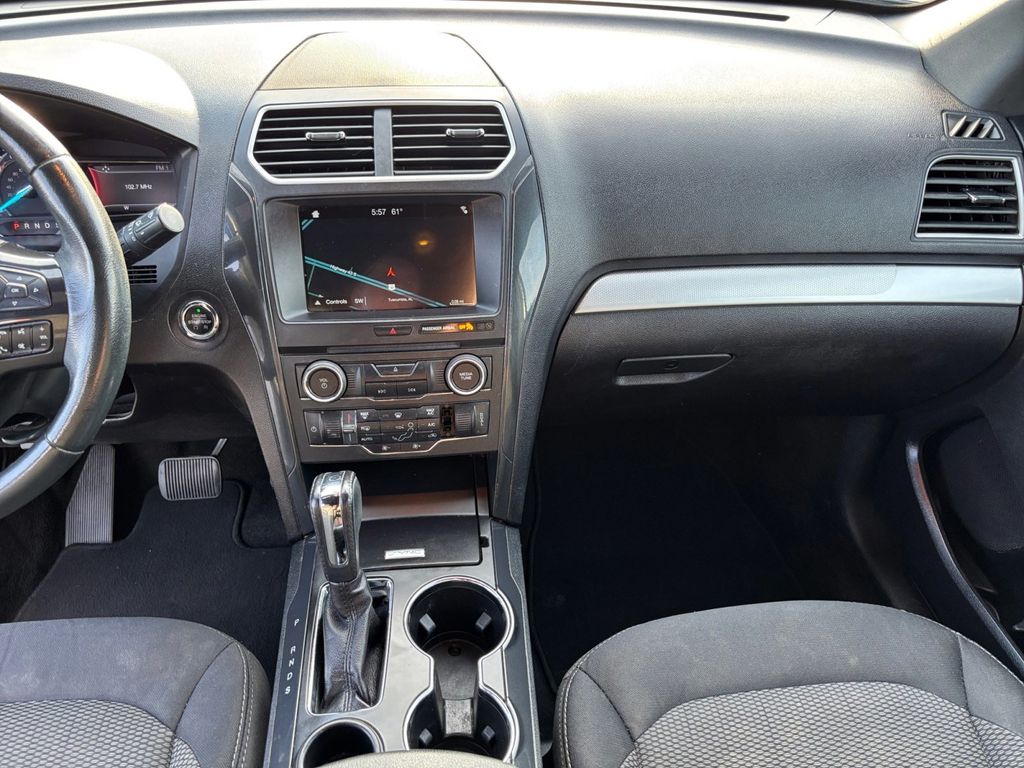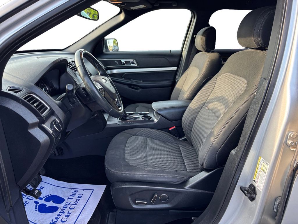 2017 Ford Explorer XLT Ingot Silver XLT FWD 6-Speed Automatic with Select-Shift 2.3L I4 EcoBoost 18" Painted Aluminum Wheels, 2 Driver Configurable 4.2" Color LCD Displays, 3.39 Non-Limited-Slip Axle Ratio, 3rd row seats: split-bench, 4-Wheel Disc Brakes, 6 Speakers, ABS brakes, Air Conditioning, Alloy wheels, AM/FM radio: SiriusXM, Auto-Dimming Driver's Sideview Mirror, Auto-Dimming Rear-View Mirror, BLIS Blind Spot Information System, Brake assist, Bumpers: body-color, CD player, Compass, Delay-off headlights, Driver Connect Package, Driver door bin, Driver vanity mirror, Dual front impact airbags, Dual front side impact airbags, Dual-Zone Electronic Automatic Temperature Ctrl, Electronic Stability Control, Emergency communication system: 911 Assist, Equipment Group 201A, Exterior Parking Camera Rear, Four wheel independent suspension, Front anti-roll bar, Front Bucket Seats, Front Center Armrest, Front fog lights, Front License Plate Bracket, Front reading lights, Fully automatic headlights, Hands-Free Foot-Activated Liftgate, Heated door mirrors, Illuminated entry, Knee airbag, Leather steering wheel, Low tire pressure warning, Occupant sensing airbag, Outside temperature display, Overhead airbag, Overhead console, Panic alarm, Passenger door bin, Passenger vanity mirror, Power door mirrors, Power driver seat, Power passenger seat, Power steering, Power windows, Radio: AM/FM Stereo w/Single-CD/MP3 Capable, Rear air conditioning, Rear anti-roll bar, Rear Parking Sensors, Rear reading lights, Rear seat center armrest, Rear window defroster, Rear window wiper, Remote keyless entry, Remote Start System, Roof rack: rails only, Roof-Rail Crossbars (Dealer Installed), Security system, Speed control, Speed-sensing steering, Speed-Sensitive Wipers, Split folding rear seat, Spoiler, Steering wheel mounted audio controls, SYNC Communication & Entertainment System, Tachometer, Telescoping steering wheel, Tilt steering wheel, Traction control, Trip computer, Turn signal indicator mirrors, Unique Cloth Bucket Seats, Variably intermittent wipers, Voice-Activated Touchscreen Navigation System, XLT Technology Feature Bundle.