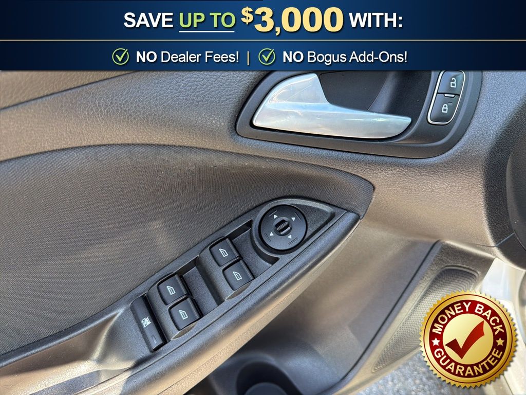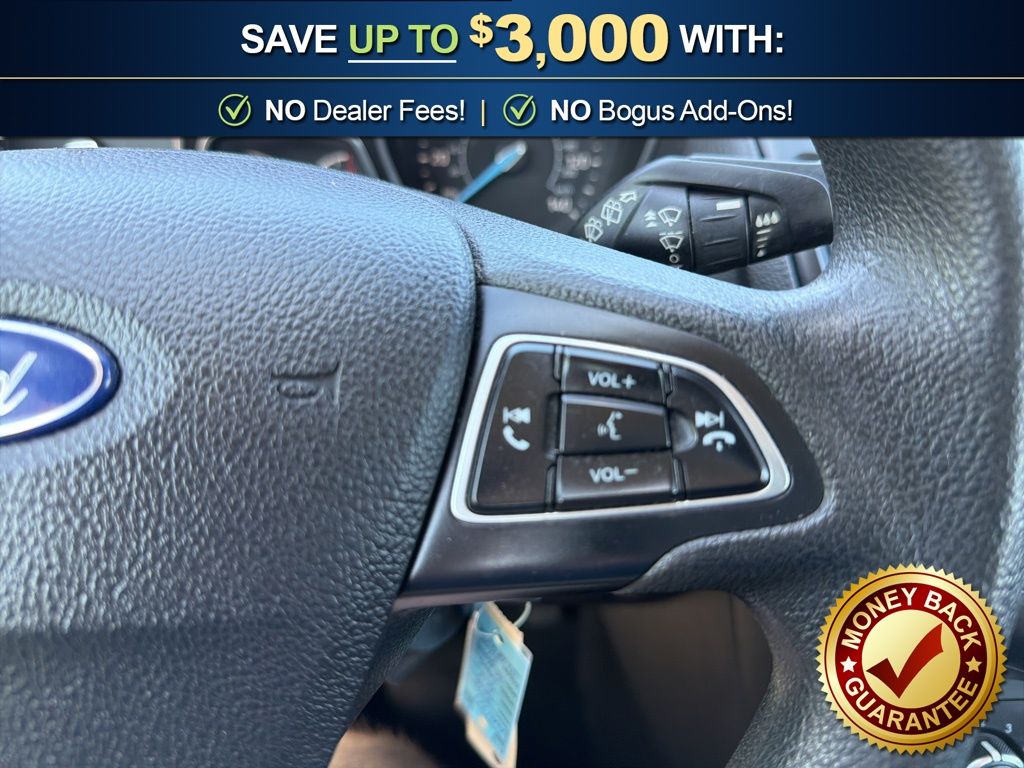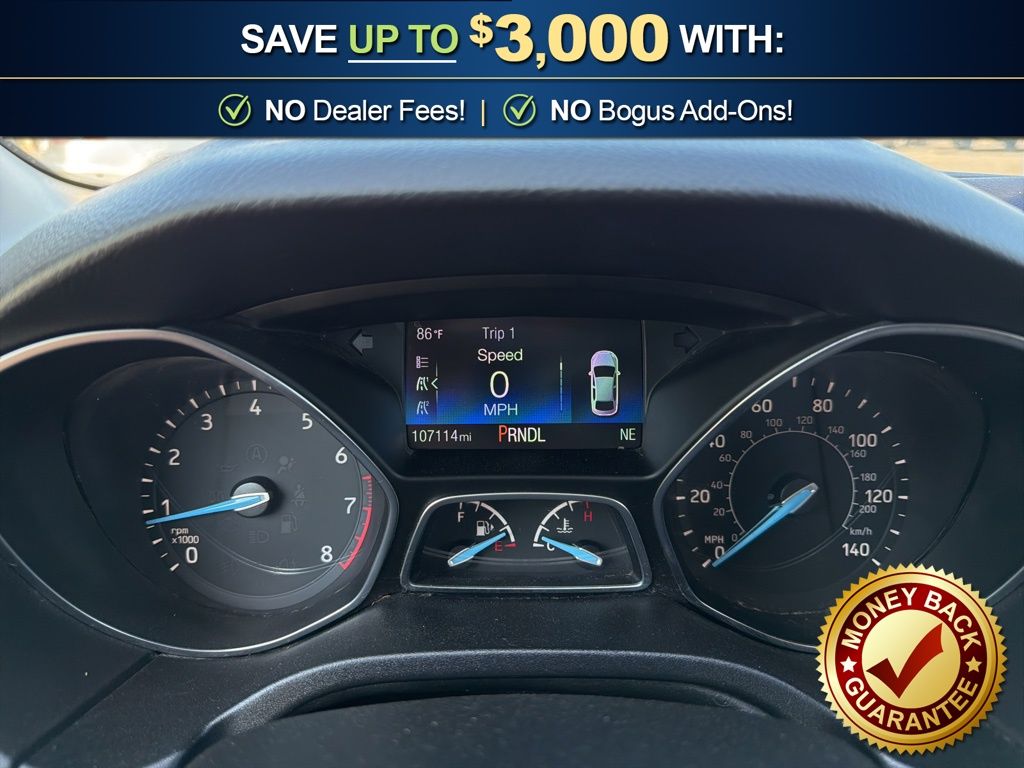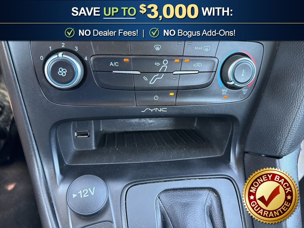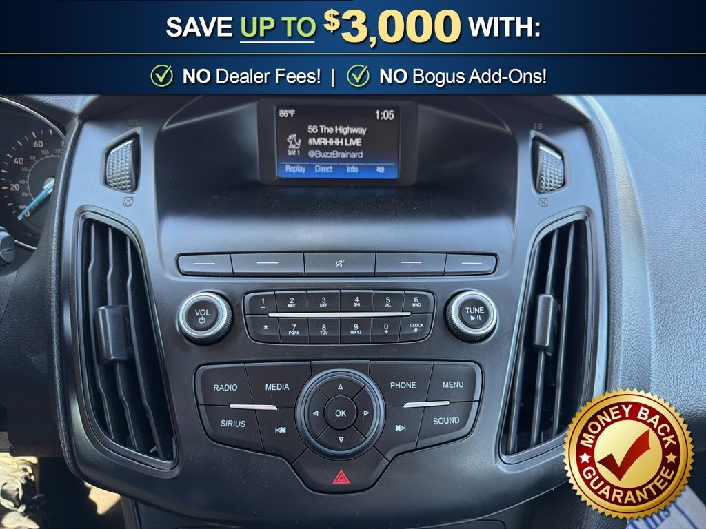 6 Speakers, ABS brakes, Air Conditioning, Alloy wheels, AM/FM radio: SiriusXM, Brake assist, Bumpers: body-color, Cloth Front Bucket Seats, Compass, Delay-off headlights, Driver door bin, Driver vanity mirror, Dual front impact airbags, Dual front side impact airbags, Electronic Stability Control, Emergency communication system: 911 Assist, Equipment Group 200A, Exterior Parking Camera Rear, Four wheel independent suspension, Front anti-roll bar, Front Bucket Seats, Front Center Armrest, Front reading lights, Fully automatic headlights, Illuminated entry, Knee airbag, Low tire pressure warning, Occupant sensing airbag, Outside temperature display, Overhead airbag, Overhead console, Panic alarm, Passenger door bin, Passenger vanity mirror, Power door mirrors, Power steering, Power windows, Radio data system, Radio: AM/FM/MP3-Capable, Rear anti-roll bar, Rear window defroster, Rear window wiper, Remote keyless entry, Speed control, Split folding rear seat, Spoiler, Steering wheel mounted audio controls, SYNC Communications & Entertainment System, Tachometer, Telescoping steering wheel, Tilt steering wheel, Traction control, Trip computer, Variably intermittent wipers, Wheels: 16" Sparkle Silver Painted Aluminum. 2018 Ford Focus SE