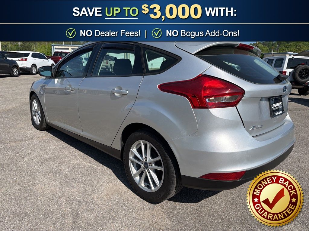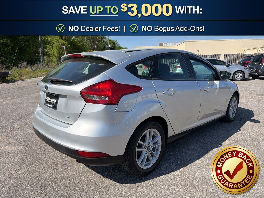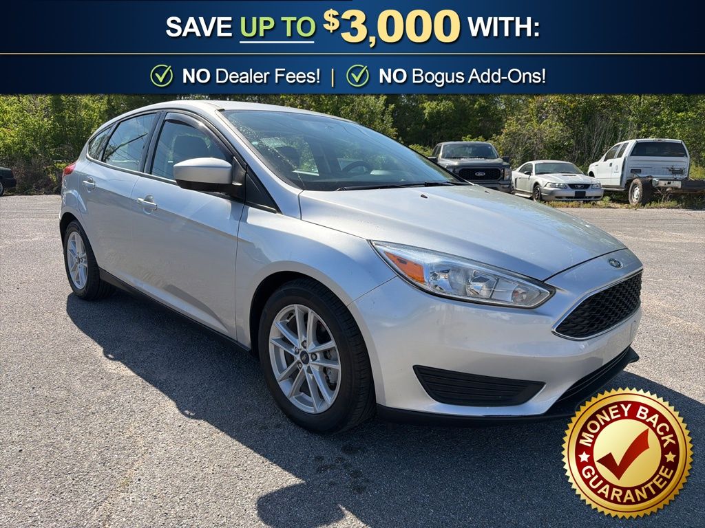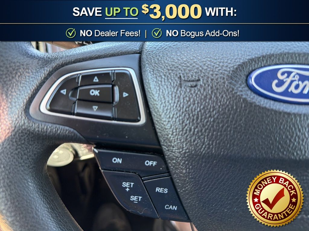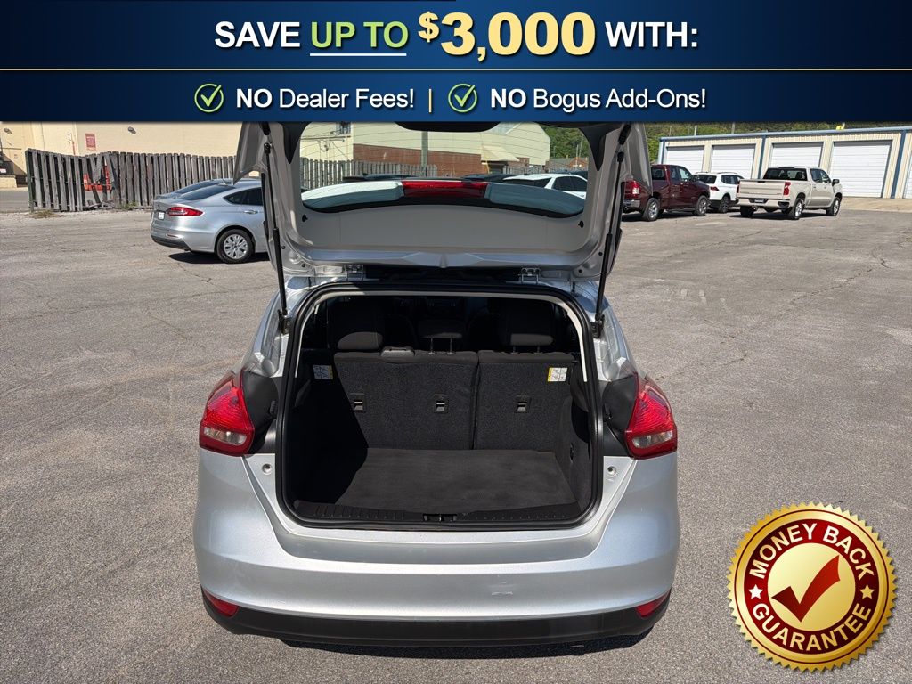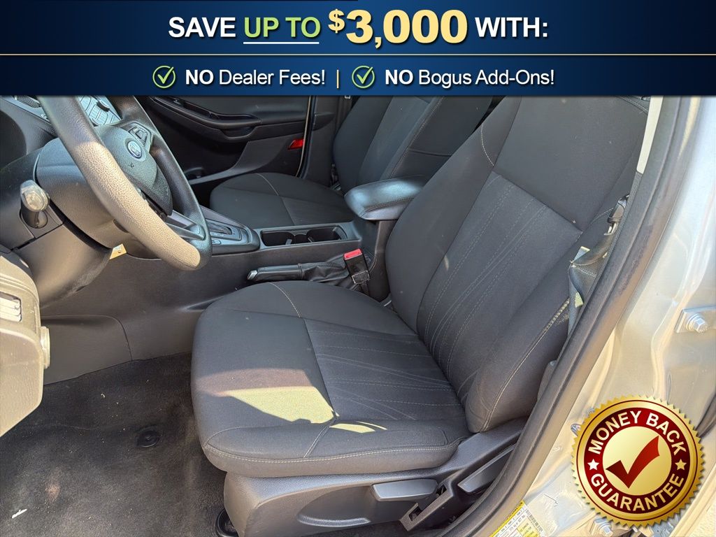 6 Speakers, ABS brakes, Air Conditioning, Alloy wheels, AM/FM radio: SiriusXM, Brake assist, Bumpers: body-color, Cloth Front Bucket Seats, Compass, Delay-off headlights, Driver door bin, Driver vanity mirror, Dual front impact airbags, Dual front side impact airbags, Electronic Stability Control, Emergency communication system: 911 Assist, Equipment Group 200A, Exterior Parking Camera Rear, Four wheel independent suspension, Front anti-roll bar, Front Bucket Seats, Front Center Armrest, Front reading lights, Fully automatic headlights, Illuminated entry, Knee airbag, Low tire pressure warning, Occupant sensing airbag, Outside temperature display, Overhead airbag, Overhead console, Panic alarm, Passenger door bin, Passenger vanity mirror, Power door mirrors, Power steering, Power windows, Radio data system, Radio: AM/FM/MP3-Capable, Rear anti-roll bar, Rear window defroster, Rear window wiper, Remote keyless entry, Speed control, Split folding rear seat, Spoiler, Steering wheel mounted audio controls, SYNC Communications & Entertainment System, Tachometer, Telescoping steering wheel, Tilt steering wheel, Traction control, Trip computer, Variably intermittent wipers, Wheels: 16" Sparkle Silver Painted Aluminum. 2018 Ford Focus SE