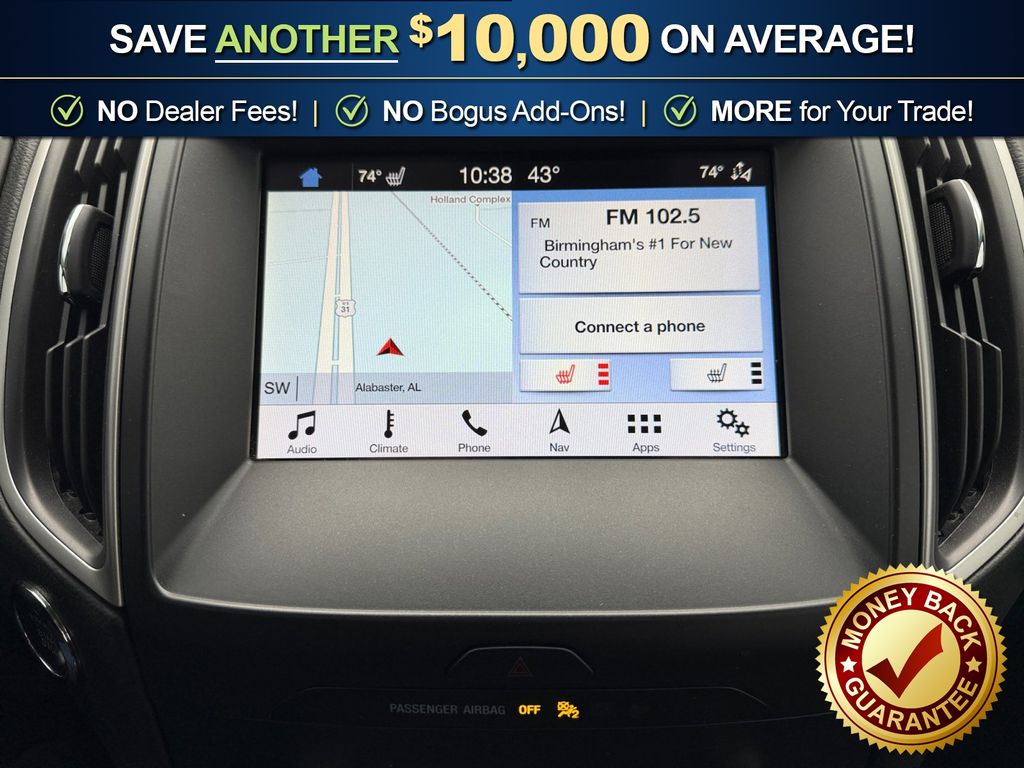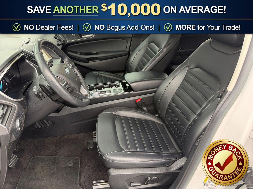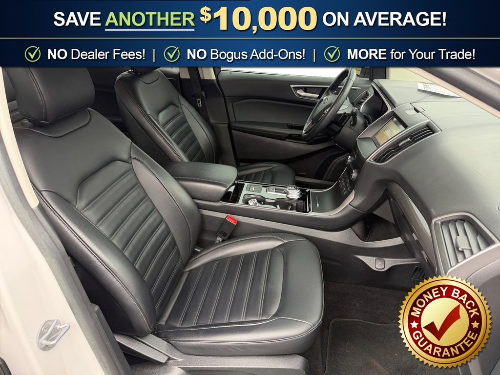 AWD, 110V/150W AC Power Outlet, 2 Driver Configurable 4.2" Color LCD Displays, 4-Wheel Disc Brakes, 6 Speakers, ABS brakes, ActiveX Seating Material Heated Bucket Seats, Adaptive Cruise Control w/Stop & Go, Air Conditioning, Alloy wheels, AM/FM radio: SiriusXM, AppLink/Apple CarPlay and Android Auto, Auto High-beam Headlights, Auto-dimming Rear-View mirror, Automatic temperature control, Axle Ratio: TBA, Brake assist, Bumpers: body-color, Compass, Convenience Package, Delay-off headlights, Driver door bin, Driver vanity mirror, Dual front impact airbags, Dual front side impact airbags, Electronic Stability Control, Emergency communication system: SYNC 3 911 Assist, Equipment Group 201A, Evasive Steering Assist, Foot-Activated Hands-Free Liftgate, Ford Co-Pilot360 Assist+, Four wheel independent suspension, Front anti-roll bar, Front Bucket Seats, Front Center Armrest w/Storage, Front dual zone A/C, Front fog lights, Front License Plate Bracket, Front reading lights, Fully automatic headlights, Heated door mirrors, Illuminated entry, Knee airbag, Lane Centering, LED Signature Daytime Running Lamps, Low tire pressure warning, Occupant sensing airbag, Outside temperature display, Overhead airbag, Overhead console, Panic alarm, Passenger door bin, Passenger vanity mirror, Perimeter Alarm, Power door mirrors, Power driver seat, Power passenger seat, Power steering, Power windows, Premium 9 Speaker Audio System, Radio: AM/FM Stereo/MP3 Capable, Rain sensing wipers, Rear anti-roll bar, Rear Parking Sensors, Rear reading lights, Rear seat center armrest, Rear window defroster, Rear window wiper, Remote keyless entry, Remote Start System, Roof rack: rails only, SiriusXM Radio, SiriusXM Traffic & Travel Link, Speed control, Speed-Sensitive Wipers, Split folding rear seat, Spoiler, Steering wheel mounted audio controls, SYNC 3 Communications & Entertainment System, Tachometer, Telescoping steering wheel, Tilt steering wheel, Traction control, Trip computer, Turn signal indicator mirrors, Unique Cloth Bucket Seats, Universal Garage Door Opener (UGDO), Variably intermittent wipers, Voice-Activated Touchscreen Navigation System, Wheel-Locking Lug Nuts (Dealer Installed), Wheels: 18" Sparkle Silver-Painted Aluminum, Wireless Charging Pad, AWD. 2019 Ford Edge SEL