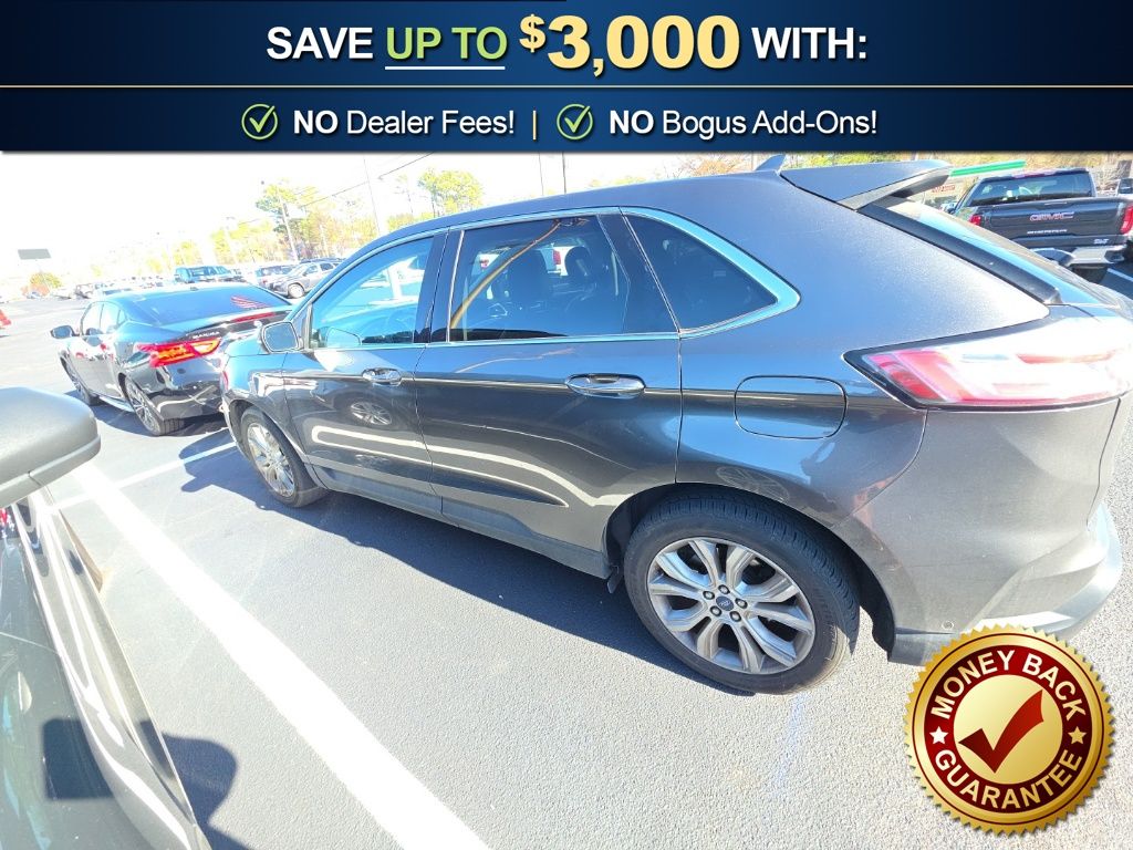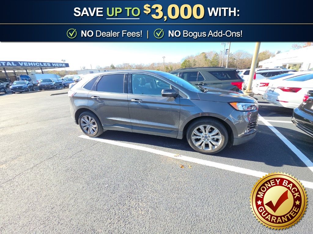 12 Speakers, 3.80 Axle Ratio, 4-Wheel Disc Brakes, ABS brakes, Adaptive Cruise Control w/Stop & Go, Adaptive LED Headlamps, Air Conditioning, Alloy wheels, AM/FM radio: SiriusXM, Auto High-beam Headlights, Auto tilt-away steering wheel, Auto-Dimming Driver's Sideview Mirror, Auto-dimming Rear-View mirror, Automatic temperature control, Brake assist, Bumpers: body-color, Compass, Delay-off headlights, Driver door bin, Driver vanity mirror, Dual front impact airbags, Dual front side impact airbags, Electronic Stability Control, Emergency communication system: SYNC 3 911 Assist, Enhanced Active Park Assist, Equipment Group 301A, Evasive Steering Assist, FordPass Connect, Four wheel independent suspension, Front 180-Degree Camera w/Split View & Washer, Front anti-roll bar, Front Bucket Seats, Front Center Armrest w/Storage, Front dual zone A/C, Front fog lights, Front reading lights, Fully automatic headlights, Garage door transmitter, Heated door mirrors, Heated front seats, Heated Rear Seats, Heated steering wheel, Illuminated entry, Knee airbag, Lane Centering, Leather-Trimmed Heated Sport Bucket Seats, Leather-Trimmed Heated/Cooled Sport Bucket Seats, Low tire pressure warning, Memory seat, Occupant sensing airbag, Outside temperature display, Overhead airbag, Overhead console, Panic alarm, Panoramic Vista Roof, Passenger door bin, Passenger vanity mirror, Power door mirrors, Power driver seat, Power Liftgate, Power passenger seat, Power steering, Power windows, Radio: B&O Sound System by Bang & Olufsen, Rain sensing wipers, Rear anti-roll bar, Rear reading lights, Rear seat center armrest, Rear window defroster, Rear window wiper, Remote keyless entry, Roof rack: rails only, Security system, SiriusXM Radio, SiriusXM Traffic & Travel Link, Speed control, Speed-Sensitive Wipers, Split folding rear seat, Spoiler, Steering wheel memory, Steering wheel mounted audio controls, SYNC 3 Communications & Entertainment System, Tachometer, Telescoping steering wheel, Tilt steering wheel, Traction control, Trip computer, Turn signal indicator mirrors, Variably intermittent wipers, Voice-Activated Touchscreen Navigation System, Wheels: 19" Luster Nickel-Painted Aluminum. 2020 Ford Edge Titanium
