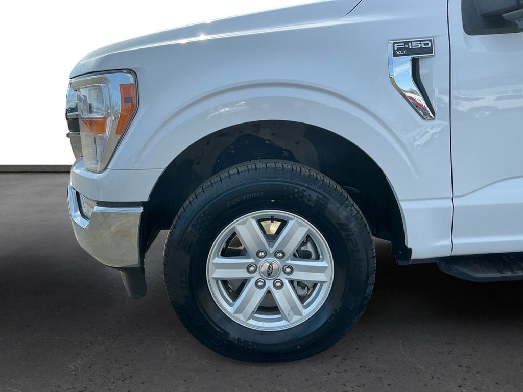 2022 Ford F-150 XLT Oxford White XLT 4WD 10-Speed Automatic 5.0L V8 4WD, 3.31 Axle Ratio, 4-Wheel Disc Brakes, 6 Speakers, 8-Way Power Driver's Seat w/Power Lumbar, 8" Productivity Screen in Instrument Cluster, ABS brakes, Air Conditioning, Alloy wheels, AM/FM radio, Auto High-beam Headlights, Auto Start-Stop Removal, Black Platform Running Boards, Brake assist, Bumpers: chrome, Class IV Trailer Hitch Receiver, Cloth 40/20/40 Front Seat, Compass, Connected Navigation & SiriusXM w/360L Removal, Delay-off headlights, Driver door bin, Driver vanity mirror, Dual front impact airbags, Dual front side impact airbags, Dual Zone Electronic Automatic Temperature Control, Electronic Stability Control, Emergency communication system: SYNC 4 911 Assist, Equipment Group 301A Mid, Exterior Parking Camera Rear, Front anti-roll bar, Front Center Armrest w/Storage, Front fog lights, Front License Plate Bracket, Front reading lights, Front wheel independent suspension, Fully automatic headlights, Heated door mirrors, Illuminated entry, Leather-Wrapped Steering Wheel, Low tire pressure warning, Occupant sensing airbag, Onboard 400W Outlet, Outside temperature display, Overhead airbag, Overhead console, Panic alarm, Passenger door bin, Passenger vanity mirror, Power door mirrors, Power steering, Power windows, Radio data system, Radio: AM/FM SiriusXM w/360L, Radio: AM/FM Stereo w/6 Speakers, Rear reading lights, Rear step bumper, Rear Under-Seat Storage, Rear window defroster, Remote keyless entry, SecuriCode Drivers Side Keyless-Entry Keypad, Security system, Speed control, Speed-sensing steering, Split folding rear seat, Steering wheel mounted audio controls, SYNC 4, SYNC 4 w/Enhanced Voice Recognition, Tachometer, Telescoping steering wheel, Tilt steering wheel, Tough Bed Spray-In Bedliner, Traction control, Tray Style Floor Liner, Trip computer, Variably intermittent wipers, Voltmeter, Wheels: 17" Silver Painted Aluminum, 4WD.
