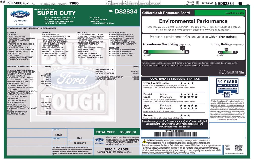 2022 Ford F-250SD XLT Truck V8 PFI SOHC 16V Federal 385hp