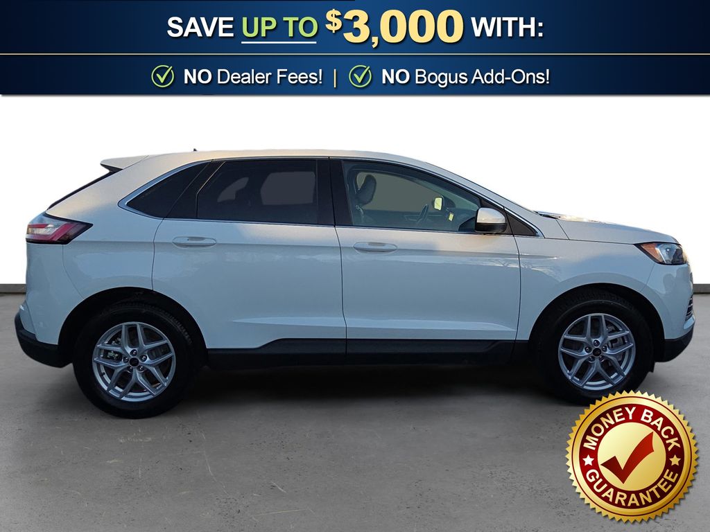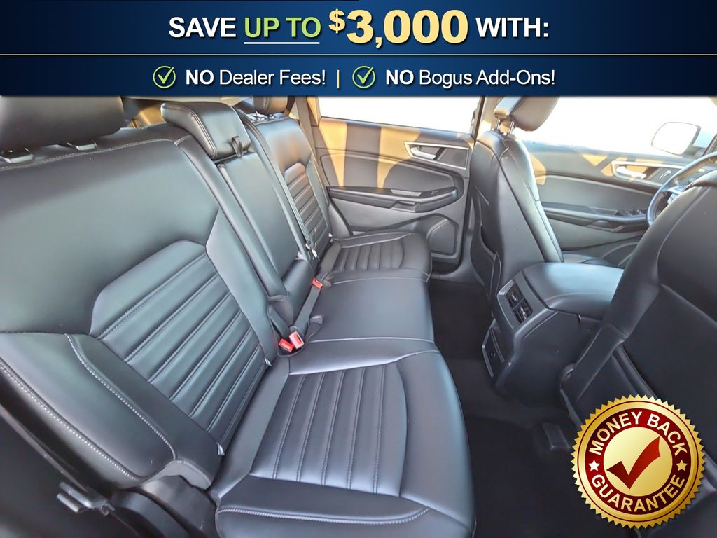 AWD, 3.80 Axle Ratio, 4-Wheel Disc Brakes, 6 Speakers, ABS brakes, ActiveX Seating Material Heated Bucket Seats, Air Conditioning, Alloy wheels, AM/FM radio: SiriusXM with 360L, Auto High-beam Headlights, Auto-dimming Rear-View mirror, Automatic temperature control, Brake assist, Bumpers: body-color, Compass, Delay-off headlights, Driver door bin, Driver vanity mirror, Dual front impact airbags, Dual front side impact airbags, Electronic Stability Control, Emergency communication system: SYNC 4 911 Assist, Equipment Group 201A, FordPass Connect, Four wheel independent suspension, Front anti-roll bar, Front Bucket Seats, Front Center Armrest w/Storage, Front dual zone A/C, Front reading lights, Fully automatic headlights, Heated door mirrors, Heated front seats, Illuminated entry, Knee airbag, Leather steering wheel, Leather-Wrapped Steering Wheel, Low tire pressure warning, Occupant sensing airbag, Outside temperature display, Overhead airbag, Overhead console, Panic alarm, Passenger door bin, Passenger vanity mirror, Power door mirrors, Power driver seat, Power passenger seat, Power steering, Power windows, Radio: AM/FM Stereo/MP3 Capable, Rear anti-roll bar, Rear Parking Sensors, Rear reading lights, Rear seat center armrest, Rear window defroster, Rear window wiper, Remote keyless entry, SiriusXM w/360L, Speed control, Speed-Sensitive Wipers, Split folding rear seat, Spoiler, Steering wheel mounted audio controls, SYNC 4A w/Enhanced Voice Recognition, Tachometer, Telescoping steering wheel, Tilt steering wheel, Traction control, Trip computer, Variably intermittent wipers, Wheels: 18" Sparkle Silver-Painted Aluminum, AWD. 2023 Ford Edge SEL