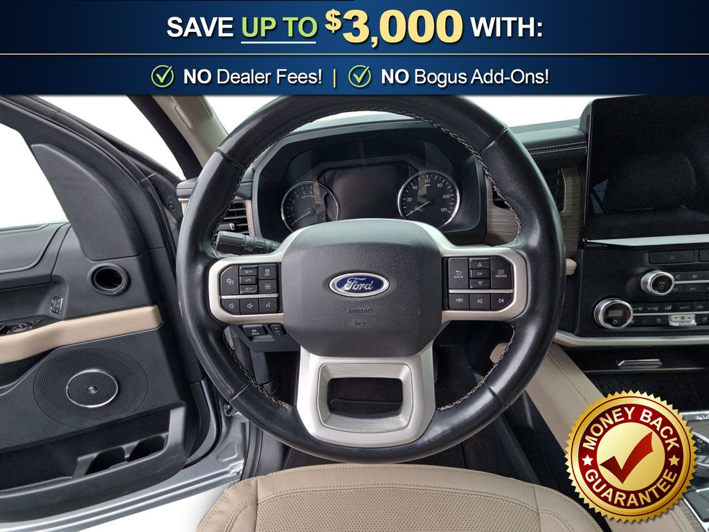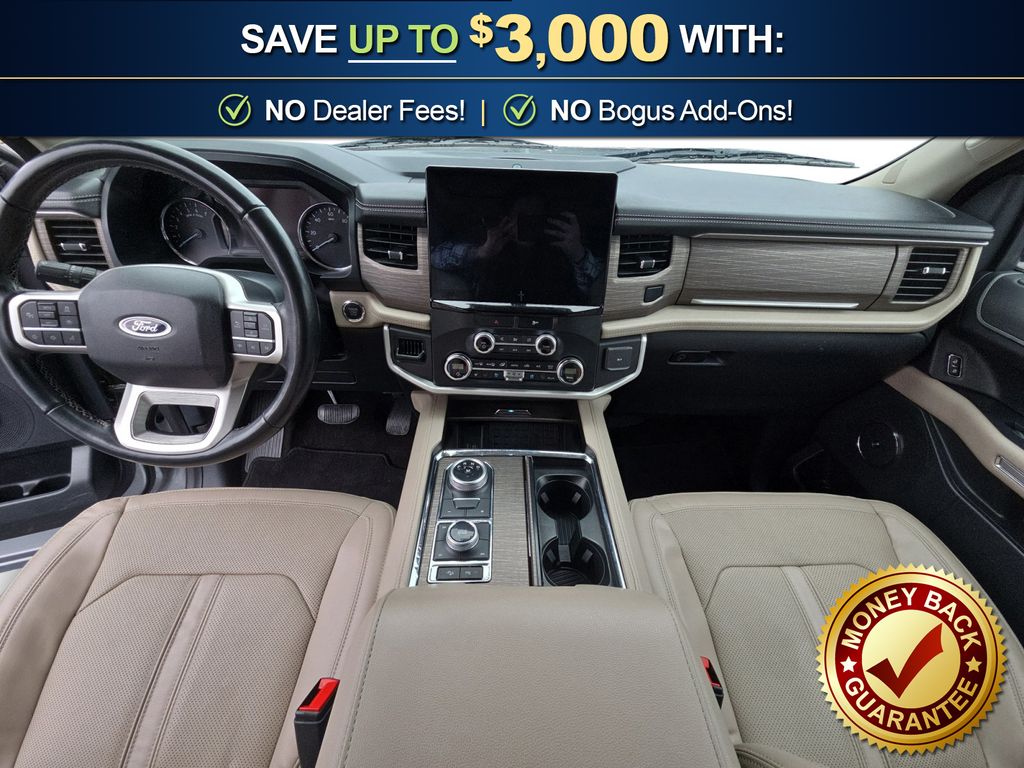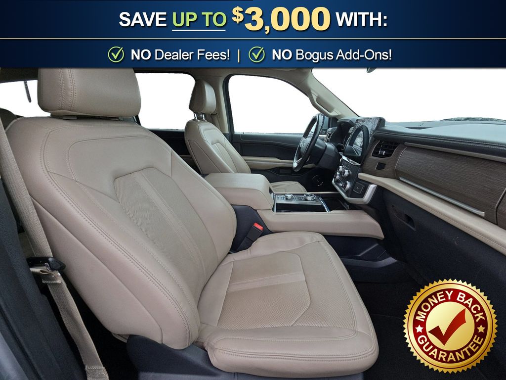 12 Speakers, 3.31 Axle Ratio, 3rd row seats: split-bench, 4-Wheel Disc Brakes, ABS brakes, Adjustable pedals, Air Conditioning, Alloy wheels, AM/FM radio: SiriusXM with 360L, Auto High-beam Headlights, Auto-dimming door mirrors, Auto-dimming Rear-View mirror, Automatic temperature control, Brake assist, Bumpers: body-color, Compass, Delay-off headlights, Driver door bin, Driver vanity mirror, Dual front impact airbags, Dual front side impact airbags, Electronic Stability Control, Emergency communication system: SYNC 4 911 Assist, Exterior Parking Camera Rear, Four wheel independent suspension, Front anti-roll bar, Front Bucket Seats, Front Center Armrest, Front dual zone A/C, Front fog lights, Front reading lights, Fully automatic headlights, Garage door transmitter, Heated & Ventilated Leather Front Captain's Chairs, Heated door mirrors, Heated front seats, Heated rear seats, Heated steering wheel, Illuminated entry, Leather steering wheel, Low tire pressure warning, Memory seat, Navigation system: Connected Navigation, Occupant sensing airbag, Outside temperature display, Overhead airbag, Overhead console, Panic alarm, Passenger door bin, Passenger vanity mirror, Pedal memory, Power door mirrors, Power driver seat, Power Liftgate, Power moonroof, Power passenger seat, Power steering, Power windows, Radio data system, Radio: B&O Sound System by Bang & Olufsen, Rain sensing wipers, Rear air conditioning, Rear anti-roll bar, Rear reading lights, Rear window defroster, Rear window wiper, Reclining 3rd row seat, Remote keyless entry, Security system, SiriusXM w/360L, Speed control, Speed-sensing steering, Speed-Sensitive Wipers, Split folding rear seat, Spoiler, Steering wheel memory, Steering wheel mounted audio controls, SYNC 4 w/Enhanced Voice Recognition, Tachometer, Telescoping steering wheel, Tilt steering wheel, Traction control, Trip computer, Turn signal indicator mirrors, Variably intermittent wipers, Ventilated front seats, Voltmeter, Wheels: 20" Bright Machined Aluminum. 2023 Ford Expedition Max Limited