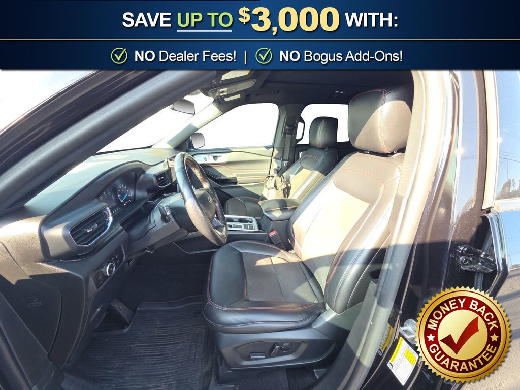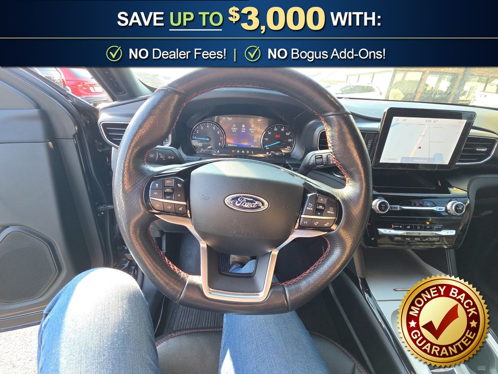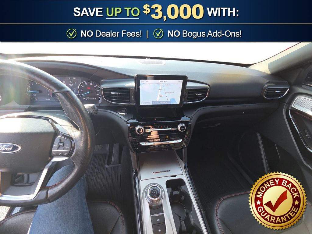 12 Speakers, 20" Machined Aluminum w/Painted Pockets Wheels, 2nd Row 35/30/35 Bench w/E-Z Entry & Armrest, 3.58 Non-Limited-Slip Rear Axle Ratio, 3rd row seats: bench, 4-Wheel Disc Brakes, 4G LTE Wi-Fi Hotspot Credit, ABS brakes, Air Conditioning, Alloy wheels, AM/FM radio: SiriusXM, Auto High-beam Headlights, Auto Start-Stop Removal (DISC), Auto-dimming Rear-View mirror, Automatic temperature control, Brake assist, Bumpers: body-color, Cargo Mat, Class IV Trailer Tow Package, Compass, Delay-off headlights, Driver door bin, Driver vanity mirror, Dual front impact airbags, Dual front side impact airbags, Dual-Headrest Rear Seat Entertainment System (DISC), Electronic Stability Control, Emergency communication system: SYNC 3 911 Assist, Engine Block Heater, Equipment Group 250A, Exterior Parking Camera Rear, FordPass Connect, Four wheel independent suspension, Front & Second Row Floor Liners (16B), Front anti-roll bar, Front Bucket Seats, Front Center Armrest, Front dual zone A/C, Front fog lights, Front reading lights, Fully automatic headlights, Heated door mirrors, Heated front seats, Heated steering wheel, Htd ActiveX Trimmed Captain's Chairs w/Miko Insert, Illuminated entry, Knee airbag, Leather steering wheel, Low tire pressure warning, Navigation System, Occupant sensing airbag, Outside temperature display, Overhead airbag, Overhead console, Panic alarm, Passenger door bin, Passenger vanity mirror, Power door mirrors, Power driver seat, Power Liftgate, Power passenger seat, Power steering, Power windows, Radio data system, Radio: B&O Sound System by Bang & Olufsen, Rain sensing wipers, Rear air conditioning, Rear anti-roll bar, Rear reading lights, Rear window defroster, Rear window wiper, Remote keyless entry, Security system, Speed control, Speed-sensing steering, Speed-Sensitive Wipers, Split folding rear seat, Spoiler, Steering wheel mounted audio controls, SYNC 3 Communications & Entertainment System, SYNC 3/Apple CarPlay/Android Auto, Tachometer, Telescoping steering wheel, Tilt steering wheel, Traction control, Trip computer, Twin Panel Moonroof, Variably intermittent wipers, Voice-Activated Touchscreen Navigation System, Wheel Lock Kit, Wheels: 21" Aluminum. 2023 Ford Explorer ST-Line