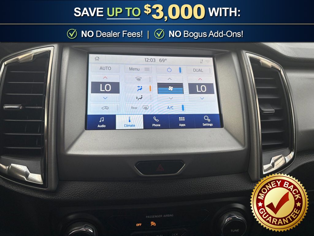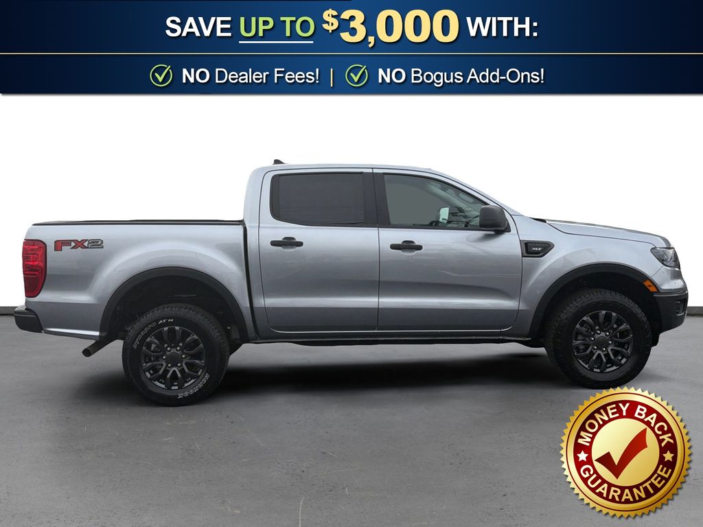 110V AC Power Outlet, 4-Wheel Disc Brakes, 4G LTE Wi-Fi Hotspot Removal, 6 Speakers, ABS brakes, Air Conditioning, Alloy wheels, AM/FM radio: SiriusXM, AM/FM Stereo, Auto High-beam Headlights, Auto Start-Stop Removal, Auto-Dimming Rear-View Mirror, Automatic temperature control, Black Mesh Grille w/Magnetic Painted Surround, Black Wheel-Lip Molding, Brake assist, Bumpers: body-color, Class IV Trailer Hitch Receiver, Compass, Delay-off headlights, Driver door bin, Driver vanity mirror, Dual front impact airbags, Dual front side impact airbags, Electronic Stability Control, Emergency communication system: SYNC 3 911 Assist, Equipment Group 301A Mid, Exposed Front Tow Hooks, Exterior Parking Camera Rear, Front anti-roll bar, Front Bucket Seats, Front Center Armrest, Front dual zone A/C, Front fog lights, Front Premium Cloth Bucket Seats, Front reading lights, Front wheel independent suspension, Fully automatic headlights, FX2 Box Decal, FX2 Package, Illuminated entry, Leather-Wrapped Shifter, Leather-Wrapped Steering Wheel, Low tire pressure warning, Magnetic Painted Fender Vent Surround, Magnetic Painted Front & Rear Bumper, Occupant sensing airbag, Off-Road Screen in Cluster, Off-Road Tuned Suspension, Outside temperature display, Overhead airbag, Overhead console, Panic alarm, Passenger door bin, Passenger vanity mirror, Power door mirrors, Power steering, Power windows, Rear Parking Sensors, Rear reading lights, Rear seat center armrest, Rear step bumper, Rear window defroster, Remote keyless entry, Remote Start System, Security system, SiriusXM Satellite Radio, Speed control, Speed-sensing steering, Sport Appearance Package, Sport Box Decal, Steering wheel mounted audio controls, SYNC 3, SYNC 3/Apple CarPlay/Android Auto, Telescoping steering wheel, Tilt steering wheel, Traction control, Trailer Tow Package, Trip computer, Variably intermittent wipers, Voltmeter, Wheels: 17" Magnetic Painted Aluminum Sport, Wheels: 17" Silver-Painted Aluminum. 2023 Ford Ranger XLT