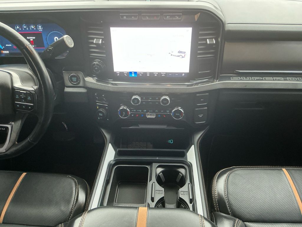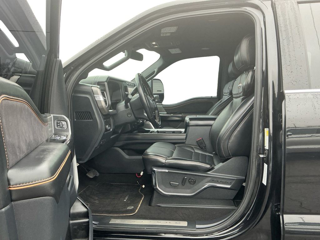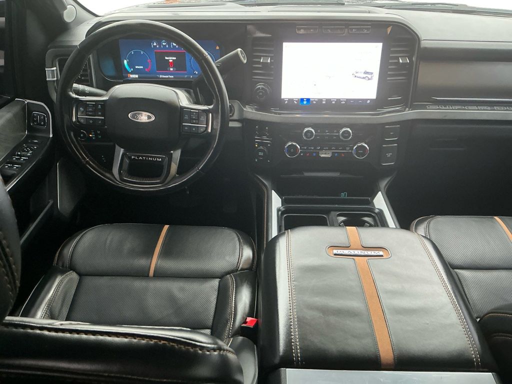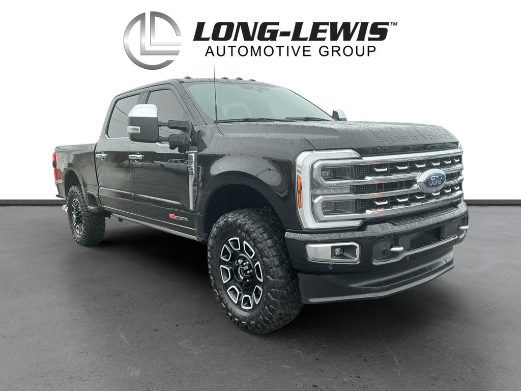 2024 Ford F-250SD Platinum Agate Black Metallic Platinum 4WD 10-Speed Automatic 6.7L High Output Power Stroke V8 Diesel 4WD, 4-Wheel Disc Brakes, ABS brakes, Adjustable pedals, Air Conditioning, Alloy wheels, AM/FM radio: SiriusXM with 360L, Auto High-beam Headlights, Auto tilt-away steering wheel, Auto-dimming Rear-View mirror, Automatic temperature control, Brake assist, Compass, Delay-off headlights, Driver door bin, Driver vanity mirror, Dual front impact airbags, Dual front side impact airbags, Electronic Stability Control, Emergency communication system: SYNC 4 911 Assist, Exterior Parking Camera Rear, F-250 >10K GVWR Package, Flow-Through Console, Front anti-roll bar, Front Bucket Seats, Front Center Armrest, Front dual zone A/C, Front fog lights, Front reading lights, Fully automatic headlights, FX4 Off-Road Package, Garage door transmitter, Heated door mirrors, Heated front seats, Heated rear seats, Heated steering wheel, High Capacity 11.6" Axle Upgrade Package, Illuminated entry, Leather steering wheel, LED Roof Clearance Lights, Low tire pressure warning, Max Recline Seats, Memory seat, Navigation system: Connected Navigation (includes complimentary 1-year trial), Outside temperature display, Overhead airbag, Overhead console, Panic alarm, Passenger door bin, Passenger vanity mirror, Pedal memory, Power door mirrors, Power driver seat, Power passenger seat, Power steering, Power windows, Radio: B&O Unleashed Sound System by Bang & Olufsen, Rain sensing wipers, Rear reading lights, Rear seat center armrest, Rear step bumper, Rear window defroster, Remote keyless entry, Security system, SiriusXM Radio w/360L, Speed control, Split folding rear seat, Steering wheel memory, Steering wheel mounted audio controls, SYNC 4 w/Enhanced Voice Recognition, Tachometer, Telescoping steering wheel, Tilt steering wheel, Traction control, Trip computer, Turn signal indicator mirrors, Twin Panel Power Moonroof, Variably intermittent wipers, Ventilated front seats, 4WD.