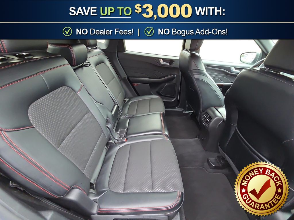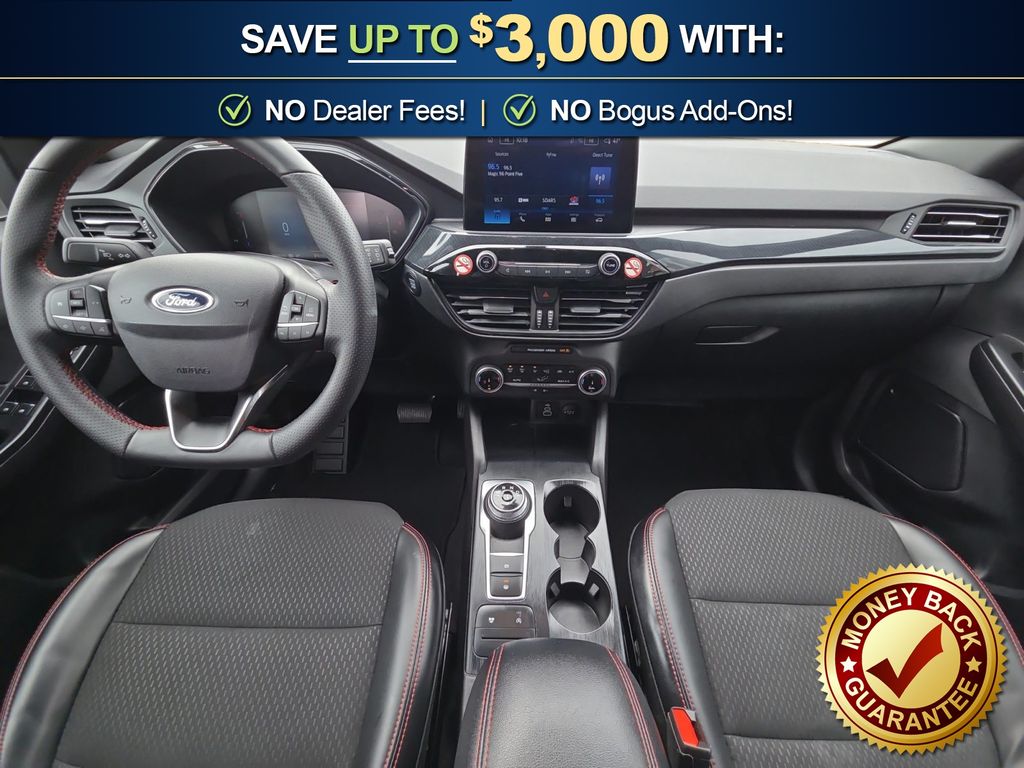 AWD, 3.81 Axle Ratio, 4-Wheel Disc Brakes, 6 Speakers, ABS brakes, Air Conditioning, Alloy wheels, AM/FM radio: SiriusXM, AM/FM Stereo, Auto High-beam Headlights, Automatic temperature control, Brake assist, Bumpers: body-color, Compass, Delay-off headlights, Driver door bin, Driver vanity mirror, Dual front impact airbags, Dual front side impact airbags, Electronic Stability Control, Emergency communication system: SYNC 4 911 Assist, FordPass Connect, Four wheel independent suspension, Front anti-roll bar, Front Bucket Seats, Front Center Armrest, Front dual zone A/C, Front reading lights, Fully automatic headlights, Illuminated entry, Internet access capable: FordPass Connect 4G, Knee airbag, Low tire pressure warning, Occupant sensing airbag, Outside temperature display, Overhead airbag, Overhead console, Panic alarm, Passenger door bin, Passenger vanity mirror, Power door mirrors, Power driver seat, Power steering, Power windows, Radio data system, Rear anti-roll bar, Rear reading lights, Rear seat center armrest, Rear window defroster, Rear window wiper, Remote keyless entry, Speed control, Speed-sensing steering, Speed-Sensitive Wipers, Split folding rear seat, Spoiler, Sport steering wheel, Steering wheel mounted audio controls, SYNC 4, Tachometer, Telescoping steering wheel, Tilt steering wheel, Traction control, Trip computer, Variably intermittent wipers, Vinyl/Cloth Front Sport Contour Bucket Seats, Wheels: 18" Rock Metallic Painted Aluminum, AWD. 2025 Ford Escape ST-Line