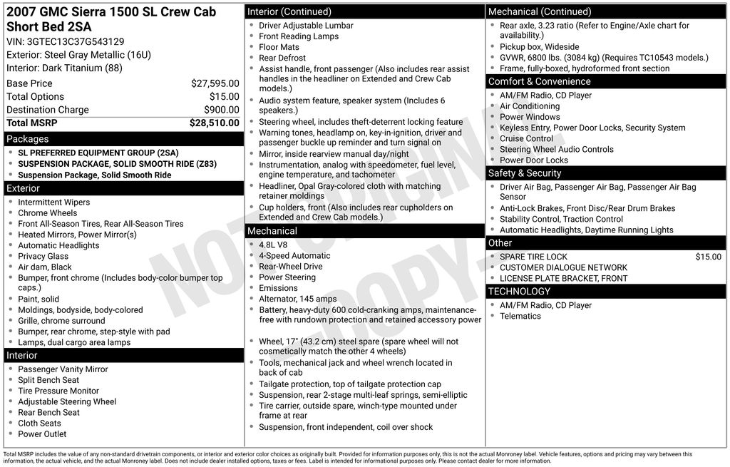 2007 GMC Sierra 1500 SL Truck Vortec V8 SFI