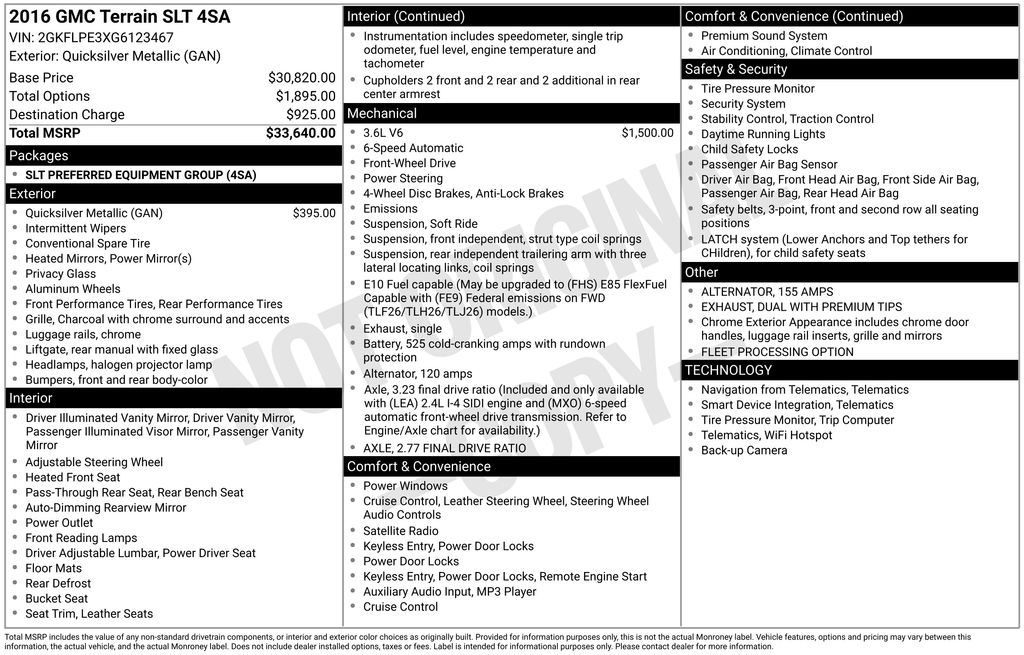 2016 GMC Terrain SLT SUV V6 DGI DOHC VVT