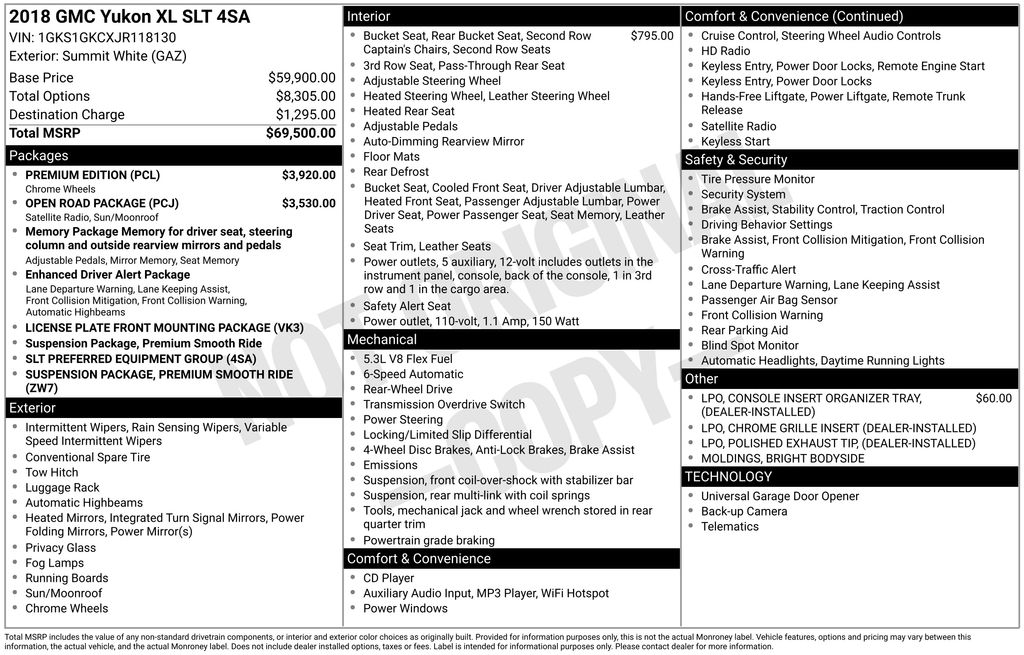 2018 GMC Yukon XL SLT SUV EcoTec3 V8