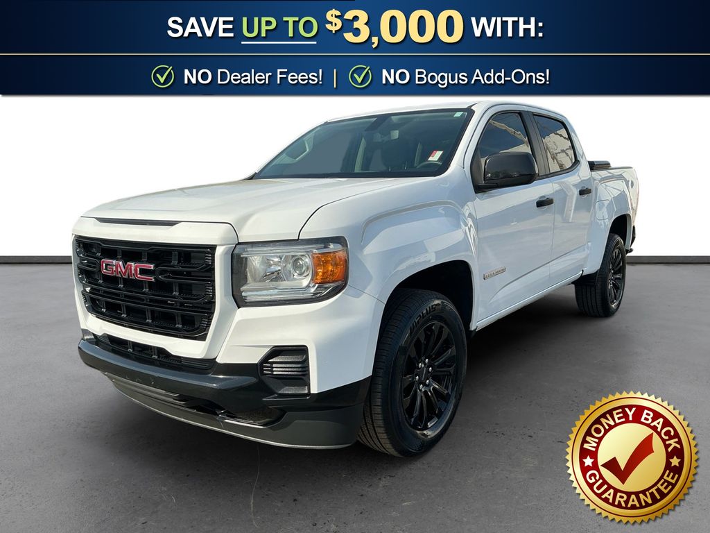 2021 GMC Canyon Elevation Standard Summit White Elevation Standard RWD 6-Speed Automatic 2.5L I4 DI DOHC VVT 4-Wheel Disc Brakes, 4.10 Rear Axle Ratio, 4G LTE Wi-Fi Hotspot Capable, 6 Speakers, 6-Speaker Audio System Feature, ABS brakes, Air Conditioning, Alloy wheels, AM/FM radio: SiriusXM, Apple CarPlay/Android Auto, Automatic Locking Rear Differential, Bumpers: body-color, Convenience Package, Delay-off headlights, Driver 4-Way Power Seat Adjuster, Driver door bin, Dual front impact airbags, Dual front side impact airbags, Electronic Automatic Cruise Control, Electronic Stability Control, Exterior Parking Camera Rear, EZ-Lift & Lower Tailgate, Front anti-roll bar, Front Bucket Seats, Front Center Armrest, Front wheel independent suspension, Fully automatic headlights, GMC Connected Access Capable, Low tire pressure warning, Occupant sensing airbag, OnStar & GMC Connected Services Capable, Overhead airbag, Passenger door bin, Passenger vanity mirror, Power driver seat, Power steering, Power windows, Preferred Equipment Group 2VL, Premium audio system: GMC Infotainment System, Radio data system, Radio: AM/FM w/7" Diagonal Color Touch-Screen, Rear seat center armrest, Rear step bumper, Rear-Window Electric Defogger, Remote Keyless Entry, Remote Locking Tailgate, SiriusXM Radio, Speed-sensing steering, Tachometer, Tilt steering wheel, Traction control, Trip computer, Unauthorized Entry Theft-Deterrent System, Variably intermittent wipers, Vinyl Seat Trim, Wheels: 18" x 8.5" Black Painted Aluminum.