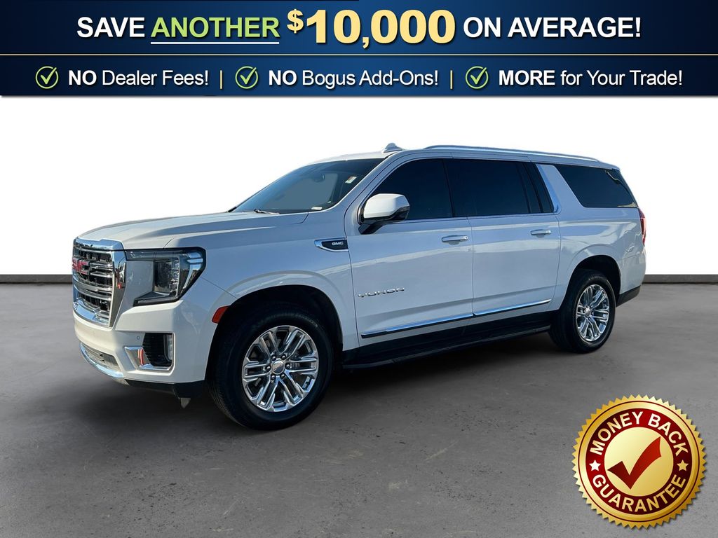 2021 GMC Yukon XL SLT White Frost Tricoat SLT RWD 10-Speed Automatic with Overdrive EcoTec3 5.3L V8 12-Way Power Seat Adjusters, 2 Presets For Outside Rearview Mirrors, 2 Presets For Power Driver Seat, 3.23 Rear Axle Ratio, 3rd Row 60/40 Power-Folding Split-Bench Seat, 3rd row seats: split-bench, 4-Wheel Disc Brakes, 9 Speakers, ABS brakes, Air Conditioning, Alloy wheels, AM/FM radio: SiriusXM with 360L, Apple CarPlay/Android Auto, Auto High-beam Headlights, Auto-dimming Rear-View mirror, Automatic Emergency Braking, Automatic temperature control, Bodyside moldings, Bose 9-Speaker Stereo Audio System Feature, Brake assist, Bright Chrome Bodyside Moldings, Bright Front & Rear Door Sill Plates, Bumpers: body-color, Chrome Door Handles w/Body-Color Strip, Compass, Delay-off headlights, Driver door bin, Driver vanity mirror, Dual front impact airbags, Dual front side impact airbags, Electronic Stability Control, Emergency communication system: OnStar and GMC connected services capable, Following Distance Indicator, Forward Collision Alert, Four wheel independent suspension, Front & Rear Park Assist, Front anti-roll bar, Front Bucket Seats, Front Center Armrest, Front dual zone A/C, Front fog lights, Front Pedestrian Braking, Front reading lights, Fully automatic headlights, Garage door transmitter, Hands-Free Power Programmable Rear Liftgate, HD Radio, HD Surround Vision, Heated & Ventilated Driver & Front Passenger Seats, Heated 2nd Row Outboard Position Seats, Heated Automatic Steering Wheel, Heated door mirrors, Heated Driver & Front Passenger Seats, Heated front seats, Illuminated entry, Inside Rear-View Auto-Dimming Mirror, IntelliBeam Automatic High Beam On/Off, Lane Change Alert w/Side Blind Zone Alert, Lane Keep Assist w/Lane Departure Warning, Leather steering wheel, Low tire pressure warning, Memory seat, Not Equipped w/Automatic Stop/Start, Not Equipped w/Steering Column Lock, Occupant sensing airbag, Outside Heated Power-Adjustable Mirrors, Outside temperature display, Overhead airbag, Overhead console, Panic alarm, Passenger door bin, Passenger vanity mirror, Perforated Leather Seating Surfaces, Power door mirrors, Power driver seat, Power Liftgate, Power passenger seat, Power Release 2nd Row 60/40 Split-Folding Bench Seat, Power Release 2nd Row Bucket Seats, Power steering, Power Tilt & Telescopic Steering Column, Power windows, Preferred Equipment Group 4SA, Premium Smooth Ride Suspension, Radio: AM/FM/SiriusXM, Radio: AM/FM/SiriusXM w/Navigation, Rain sensing wipers, Rear air conditioning, Rear anti-roll bar, Rear Cross Traffic Alert, Rear Media & Nav Package, Rear Pedestrian Alert, Rear reading lights, Rear seat center armrest, Rear Seat Media System, Rear window defroster, Rear window wiper, Remote keyless entry, Roof rack: rails only, Safety Alert Seat, Security system, SiriusXM w/360L, SLT Luxury Package, Speed control, Speed-sensing steering, Split folding rear seat, Spoiler, Steering wheel mounted audio controls, Tachometer, Telescoping steering wheel, Tilt steering wheel, Traction control, Trip computer, Universal Home Remote, Variably intermittent wipers, Ventilated front seats, Voltmeter, Wheels: 20" x 9" 6-Spoke Polished Aluminum.