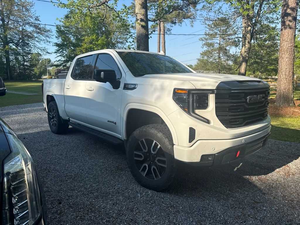 2024 GMC Sierra 1500 AT4 Summit White AT4 4WD 10-Speed Automatic EcoTec3 6.2L V8 10-Speed Automatic, 4WD, Jet Black With Kalahari Accents Leather, 10-Way Power Driver Seat Adjuster w/Lumbar, 10-Way Power Passenger Seat Adjuster w/Lumbar, 120-Volt Bed Mounted Power Outlet, 120-Volt Interior Power Outlet, 170 Amp Alternator, 18" x 8.5" Machined Aluminum Wheels, 2 Charge/Data USB Ports Inside Center Console, 2 Type-C Charge-Only Rear USB Ports, 2 USB Ports, 220 Amp Alternator, 3.23 Rear Axle Ratio, 4-Wheel Disc Brakes, 7 Speakers, ABS brakes, Air Conditioning, Alloy wheels, AM/FM radio: SiriusXM with 360L, Apple CarPlay/Android Auto, AT4 Preferred Package, AT4 Premium Package, Auto High-beam Headlights, Auto-dimming door mirrors, Auto-dimming Rear-View mirror, Auto-Locking Rear Differential, Automatic Emergency Braking, Automatic temperature control, Auxiliary External Transmission Oil Cooler, Bed View Camera, Black Chrome Header & Grille Insert Bars, Block heater, Body Color Wheel Arch Moldings (LPO), Brake assist, Buckle to Drive, Bumpers: body-color, Color-Keyed Carpeting Floor Covering, Compass, Deep-Tinted Glass, Delay-off headlights, Driver door bin, Driver Memory, Driver vanity mirror, Dual Active Exhaust, Dual front impact airbags, Dual front side impact airbags, Electric Rear-Window Defogger, Electronic Stability Control, External Engine Oil Cooling, Floor-Mounted Center Console, Following Distance Indicator, Forward Collision Alert, Front anti-roll bar, Front Bucket Seats, Front Center Armrest, Front dual zone A/C, Front fog lights, Front Pedestrian Braking, Front Prem Floor Liners w/Removable Carpet Insert, Front Rain-Sensing Wipers, Front reading lights, Front wheel independent suspension, Fully automatic headlights, GMC Connected Access Capable, HD Surround Vision, Heated 2nd Row Outboard Seats, Heated door mirrors, Heated Driver & Front Outboard Passenger Seating, Heated front seats, Heated rear seats, Heated steering wheel, Heavy-Duty Air Filter, Hill Descent Control, Hitch Guidance, Hitch View, Illuminated entry, In-Vehicle Trailering System App, Integrated Trailer Brake Controller, IntelliBeam Automatic High Beam On/Off, Keyless Open & Start, Lane Keep Assist w/Lane Departure Warning, LED Cargo Area Lighting, Low tire pressure warning, Memory seat, Multicolor 15" Diagonal Head-Up Display, Navigation System, Occupant sensing airbag, Off-Road High Clearance Step (LPO), Off-Road Suspension, OnStar & GMC Connected Services Capable, Outside temperature display, Overhead airbag, Overhead console, Panic alarm, Passenger door bin, Passenger vanity mirror, Perforated Front Leather Seat Trim, Perimeter Lighting, Power Door Locks, Power door mirrors, Power driver seat, Power Front Passenger Windows w/Express Up/Down, Power Front Windows w/Driver Express Up/Down, Power passenger seat, Power Rake & Telescoping Steering Column, Power Rear Windows w/Express Down, Power Sliding Rear Window w/Rear Defogger, Power steering, Power Sunroof, Power windows, Preferred Equipment Group 4SB, Premium audio system: GMC Infotainment System, Premium Bose 7-Speaker Sound System, Push Button Start, Radio data system, Radio: Premium GMC Infotainment Audio System, Rain sensing wipers, Rear Camera Mirror, Rear Cross Traffic Braking, Rear Pedestrian Detection, Rear Prem Floor Liners w/Removable Carpet Insert, Rear reading lights, Rear seat center armrest, Rear step bumper, Rear Wheelhouse Liners, Rear window defroster, Red Recovery Hooks, Remote keyless entry, Remote Vehicle Starter System, Safety Alert Seat, Security system, SiriusXM w/360L, Speed control, Speed-sensing steering, Split folding rear seat, Spray-On Pickup Bedliner w/AT4 Logo, Steering Wheel Audio Controls, Steering wheel mounted audio controls, Tachometer, Technology Package, Telescoping steering wheel, Theft Deterrent System (Unauthorized Entry), Tilt steering wheel, Traction control, Trailer Camera Provisions, Trailer Side Blind Zone Alert, Trailering Package, Trip computer, Ultra