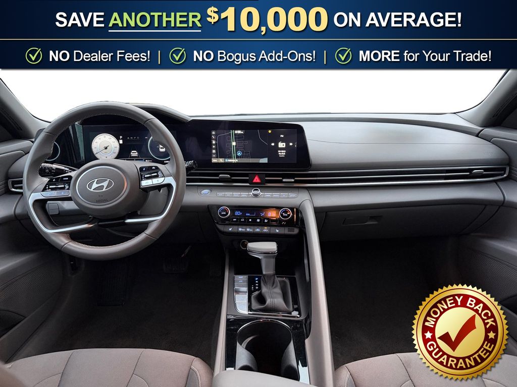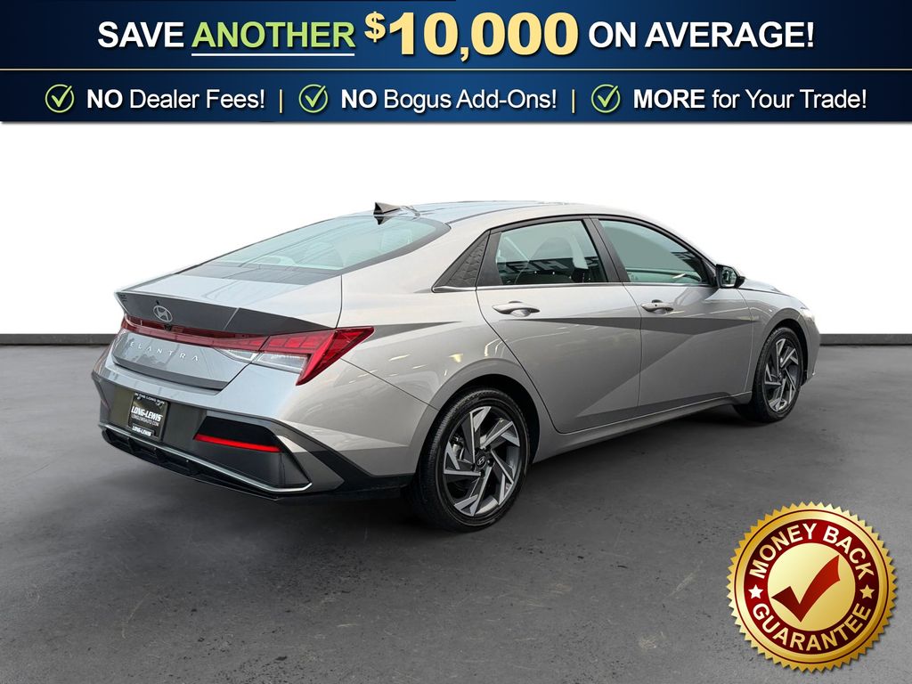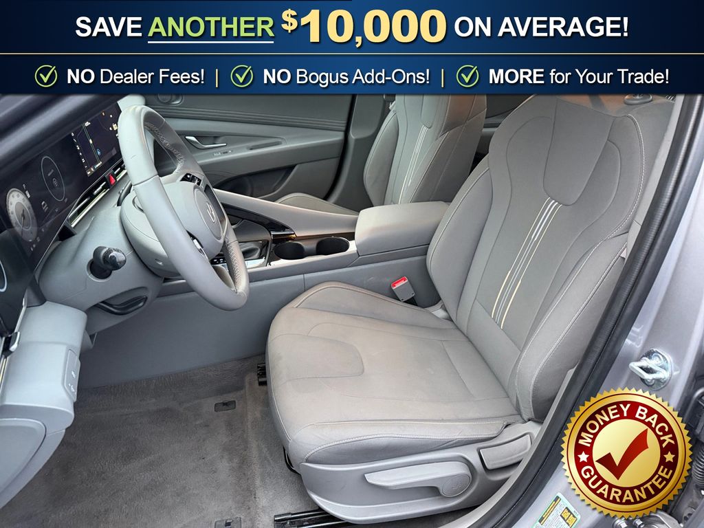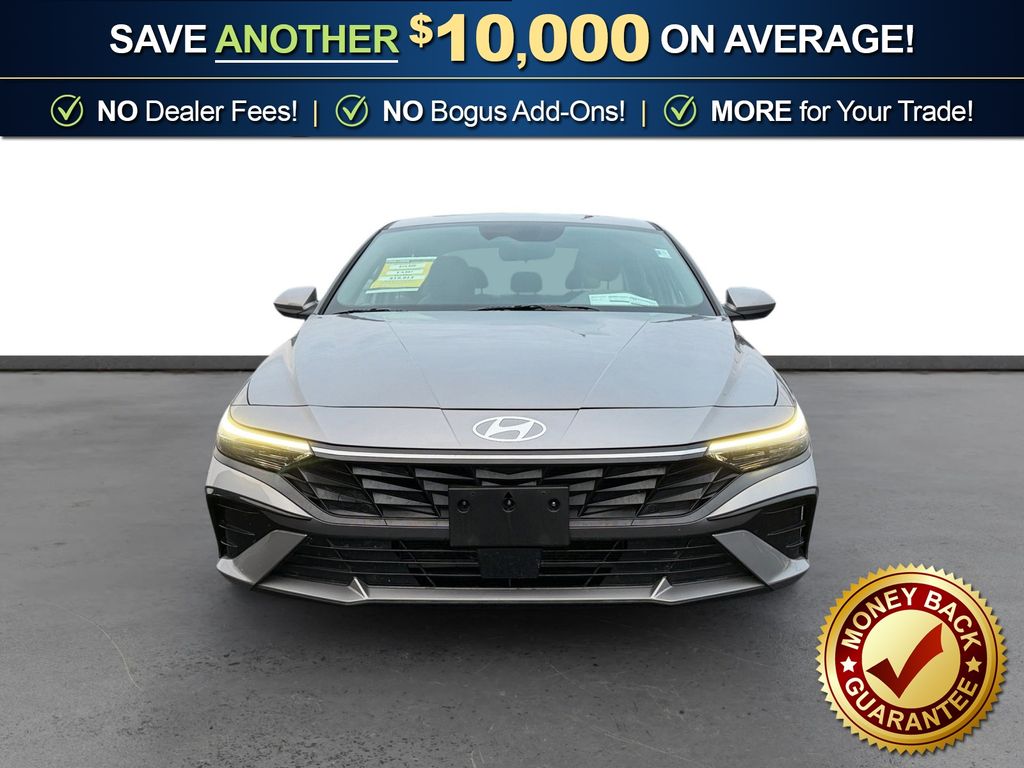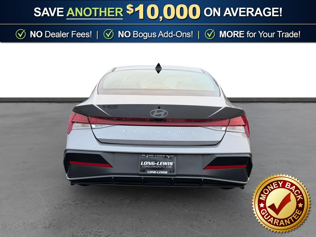 17" x 7.0J Alloy Wheels, 4-Wheel Disc Brakes, 6 Speakers, ABS brakes, Air Conditioning, Alloy wheels, AM/FM radio: SiriusXM, Apple CarPlay & Android Auto, Auto High-beam Headlights, Automatic temperature control, Brake assist, Bumpers: body-color, Delay-off headlights, Driver door bin, Driver vanity mirror, Dual front impact airbags, Dual front side impact airbags, Electronic Stability Control, Emergency communication system: Bluelink+, Exterior Parking Camera Rear, Front anti-roll bar, Front Bucket Seats, Front Center Armrest, Front dual zone A/C, Front reading lights, Front wheel independent suspension, Fully automatic headlights, Heated door mirrors, Heated Front Bucket Seats, Heated front seats, Illuminated entry, Leather Shift Knob, Leather steering wheel, Low tire pressure warning, Navigation System, Occupant sensing airbag, Option Group 01, Outside temperature display, Overhead airbag, Overhead console, Panic alarm, Passenger door bin, Passenger vanity mirror, Power door mirrors, Power moonroof, Power steering, Power windows, Premium Cloth Seat Trim, Radio: AM/FM/HD/SiriusXM Display Audio, Rear seat center armrest, Rear side impact airbag, Rear window defroster, Remote keyless entry, Security system, Speed control, Speed-sensing steering, Split folding rear seat, Steering wheel mounted audio controls, Tachometer, Telescoping steering wheel, Tilt steering wheel, Traction control, Trip computer, Variably intermittent wipers. 2025 Hyundai Elantra SEL Convenience