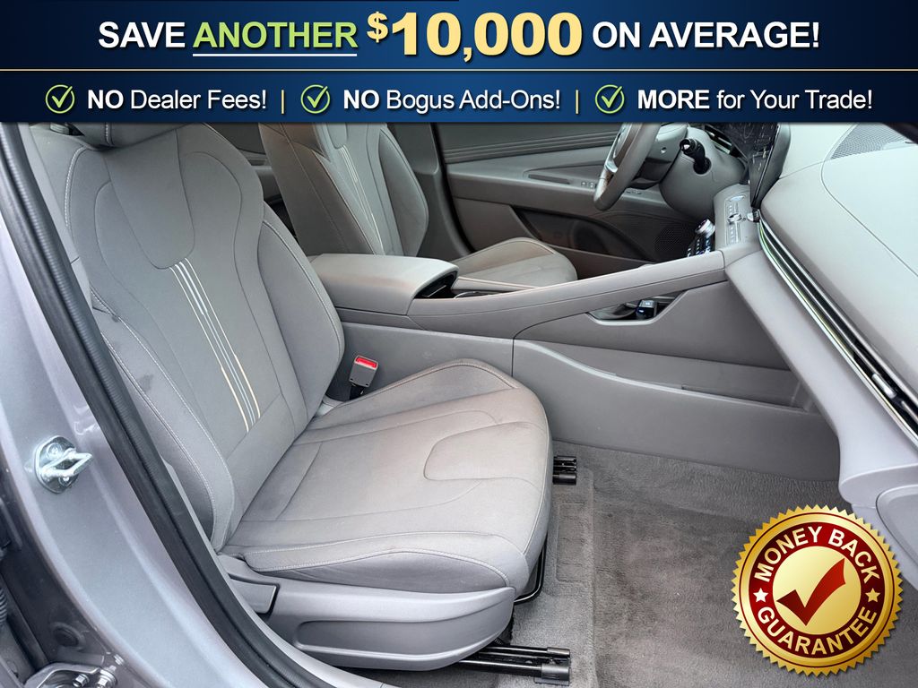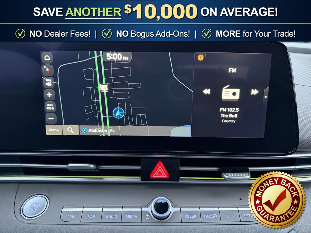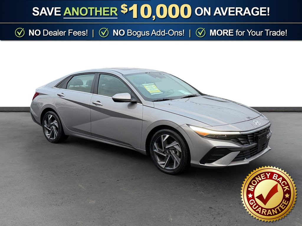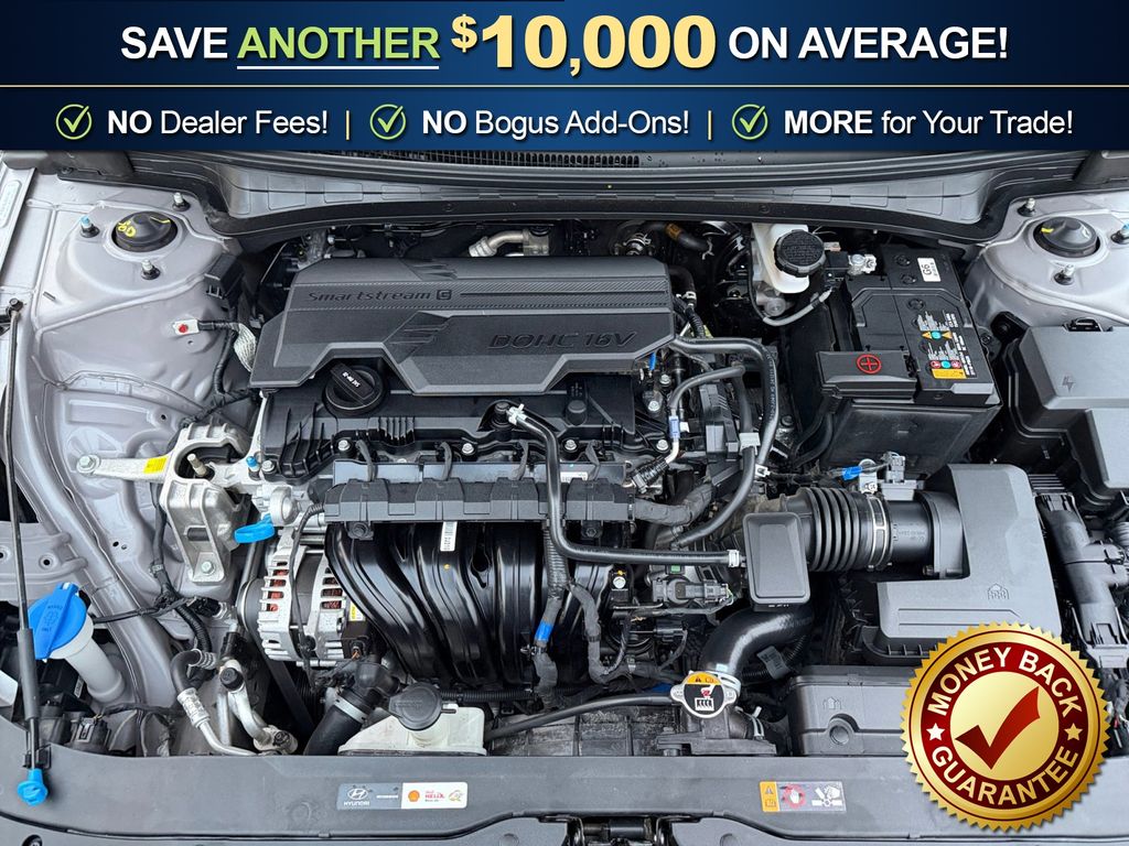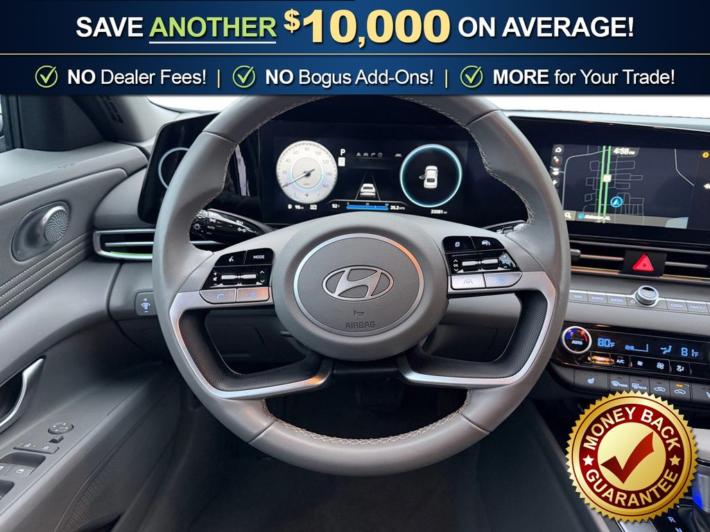 17" x 7.0J Alloy Wheels, 4-Wheel Disc Brakes, 6 Speakers, ABS brakes, Air Conditioning, Alloy wheels, AM/FM radio: SiriusXM, Apple CarPlay & Android Auto, Auto High-beam Headlights, Automatic temperature control, Brake assist, Bumpers: body-color, Delay-off headlights, Driver door bin, Driver vanity mirror, Dual front impact airbags, Dual front side impact airbags, Electronic Stability Control, Emergency communication system: Bluelink+, Exterior Parking Camera Rear, Front anti-roll bar, Front Bucket Seats, Front Center Armrest, Front dual zone A/C, Front reading lights, Front wheel independent suspension, Fully automatic headlights, Heated door mirrors, Heated Front Bucket Seats, Heated front seats, Illuminated entry, Leather Shift Knob, Leather steering wheel, Low tire pressure warning, Navigation System, Occupant sensing airbag, Option Group 01, Outside temperature display, Overhead airbag, Overhead console, Panic alarm, Passenger door bin, Passenger vanity mirror, Power door mirrors, Power moonroof, Power steering, Power windows, Premium Cloth Seat Trim, Radio: AM/FM/HD/SiriusXM Display Audio, Rear seat center armrest, Rear side impact airbag, Rear window defroster, Remote keyless entry, Security system, Speed control, Speed-sensing steering, Split folding rear seat, Steering wheel mounted audio controls, Tachometer, Telescoping steering wheel, Tilt steering wheel, Traction control, Trip computer, Variably intermittent wipers. 2025 Hyundai Elantra SEL Convenience