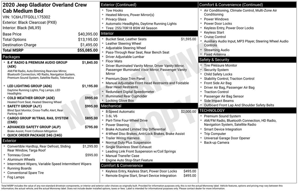 2020 Jeep Gladiator Overland Truck V6 24V VVT