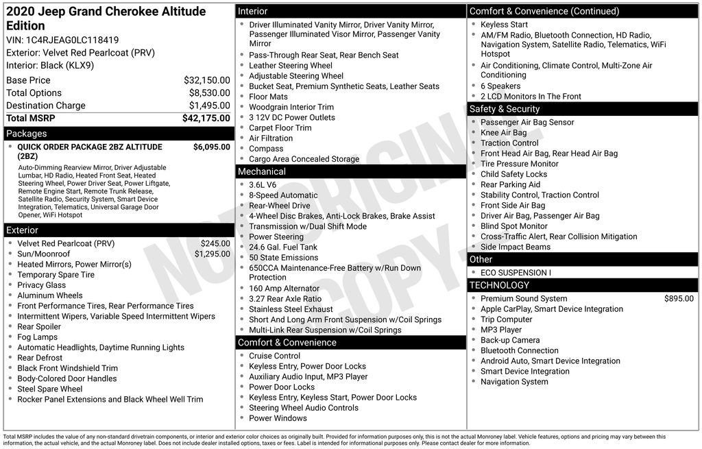 2020 Jeep Grand Cherokee Altitude SUV V6 24V VVT