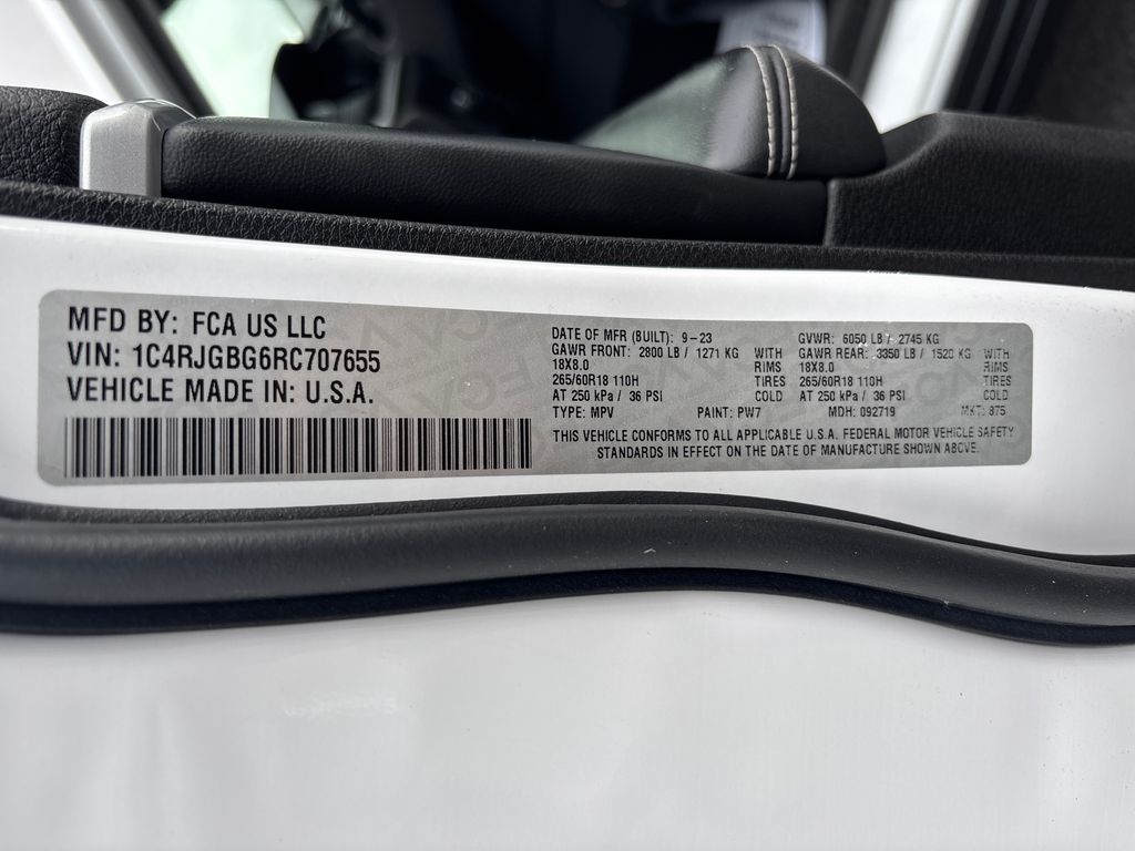 2024 Jeep Grand Cherokee Limited Bright White Clearcoat Limited RWD 8-Speed Automatic 3.6L V6 24V VVT 3.45 Rear Axle Ratio, 4-Wheel Disc Brakes, 6 Speakers, ABS brakes, Active Noise Control System, Air Conditioning, Alloy wheels, AM/FM radio: SiriusXM with 360L, Anti-whiplash front head restraints, Audio memory, Auto High-beam Headlights, Automatic temperature control, Brake assist, Bumpers: body-color, Capri Leatherette Seats, Compass, Delay-off headlights, Driver door bin, Driver vanity mirror, Dual front impact airbags, Dual front side impact airbags, Electronic Stability Control, Emergency communication system, Four wheel independent suspension, Front anti-roll bar, Front Bucket Seats, Front Center Armrest w/Storage, Front dual zone A/C, Front fog lights, Front License Plate Bracket, Front reading lights, Fully automatic headlights, Garage door transmitter, Heated door mirrors, Heated front seats, Heated rear seats, Heated steering wheel, Illuminated entry, Knee airbag, Low tire pressure warning, Memory seat, Navigation System, Normal Duty Suspension, Occupant sensing airbag, Outside temperature display, Overhead airbag, Overhead console, Panic alarm, ParkView Rear Back-Up Camera, Passenger door bin, Passenger vanity mirror, Power door mirrors, Power driver seat, Power Liftgate, Power passenger seat, Power steering, Power windows, Quick Order Package 23E, Radio data system, Radio: Uconnect 5 Nav w/10.1" Display, Rear anti-roll bar, Rear reading lights, Rear window defroster, Rear window wiper, Remote keyless entry, Security system, Speed control, Speed-Sensitive Wipers, Split folding rear seat, Spoiler, Steering wheel mounted audio controls, Tachometer, Telescoping steering wheel, Tilt steering wheel, Traction control, Trip computer, Turn signal indicator mirrors, Variably intermittent wipers, Voltmeter, Wheels: 18" x 8" Polished/Painted Aluminum.