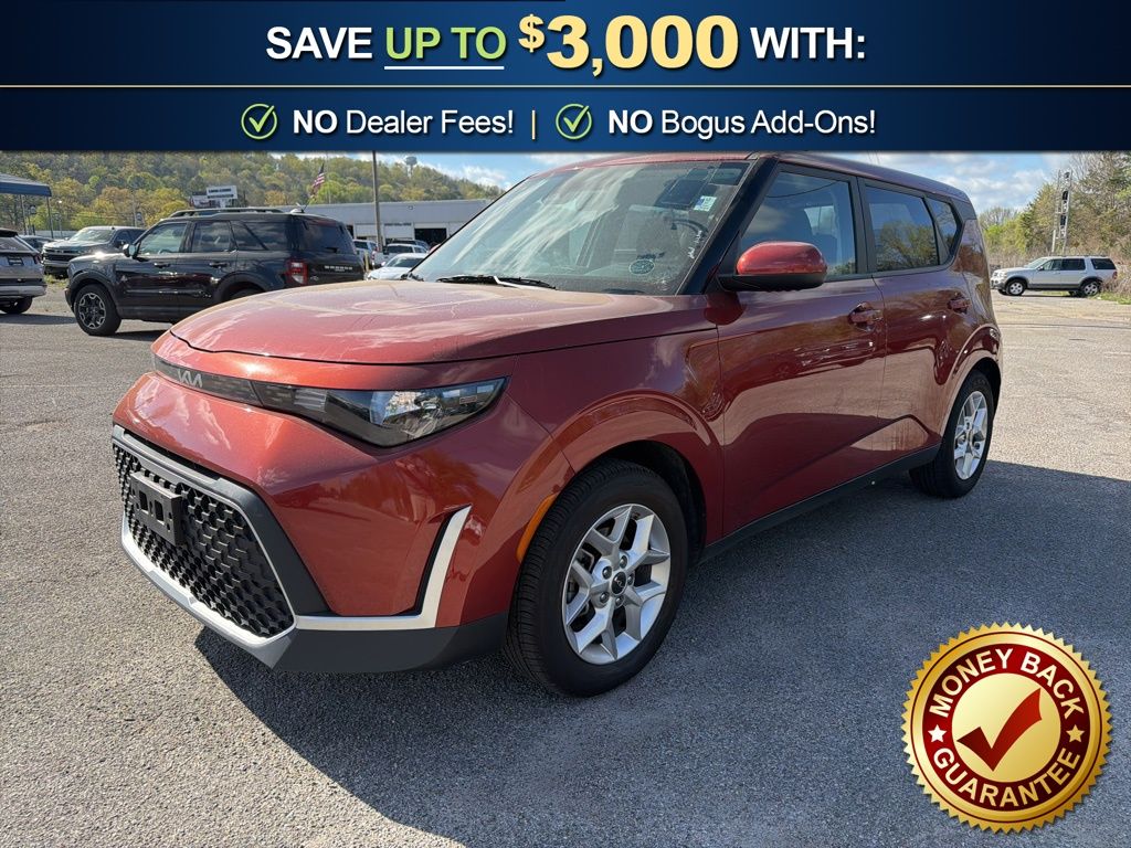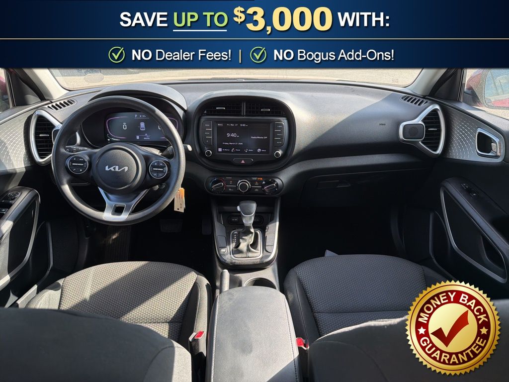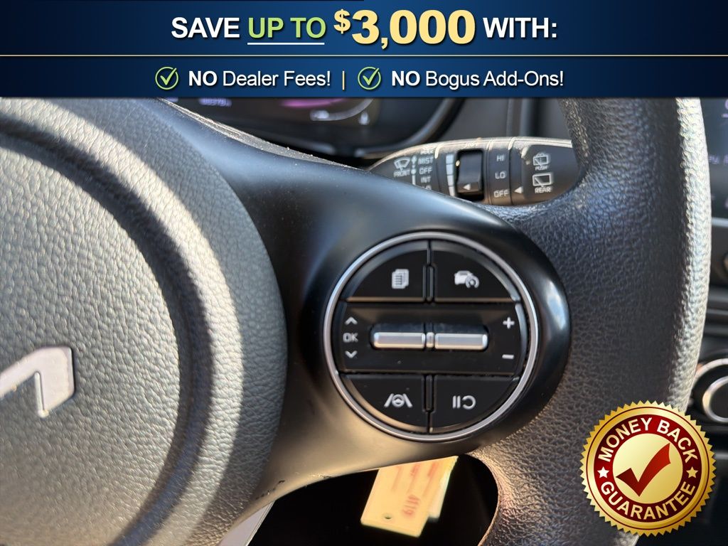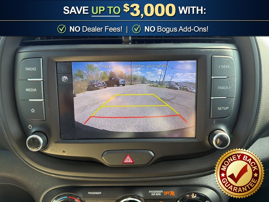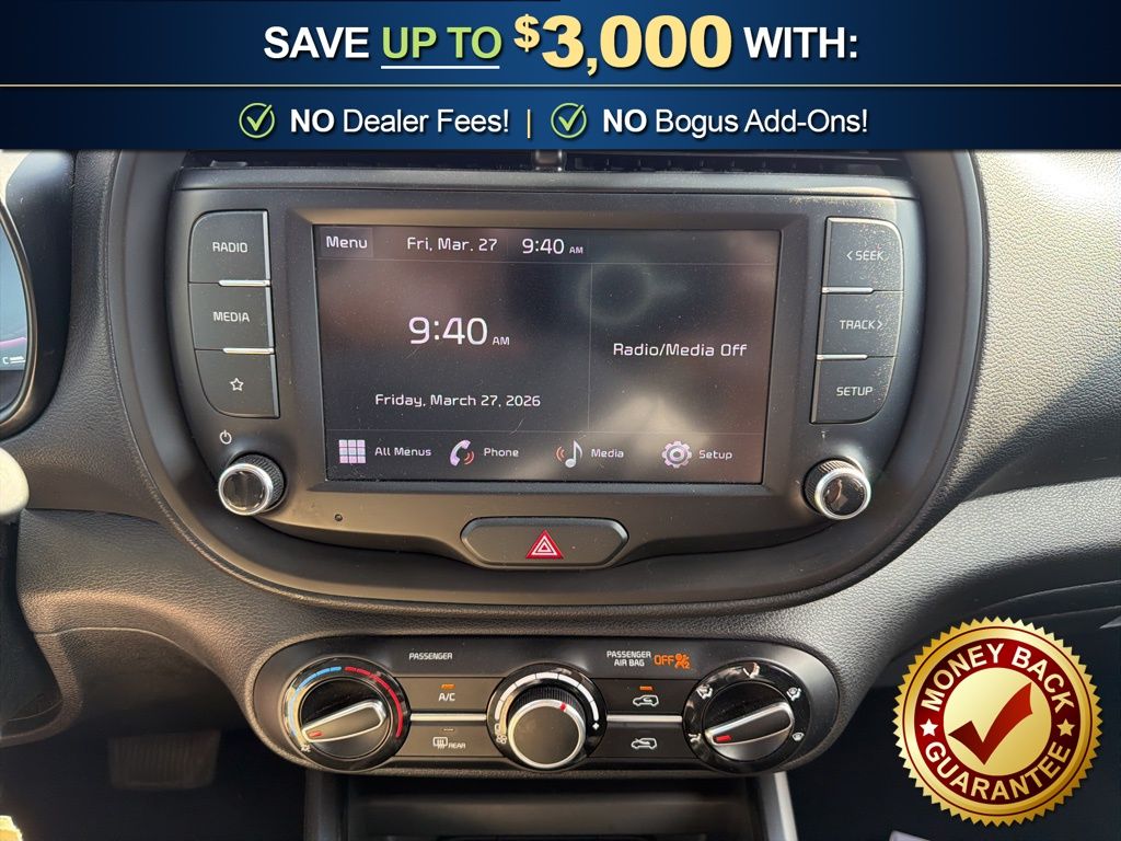 16" Alloy Wheels, 16" Steel Wheels, 4-Wheel Disc Brakes, 6 Speakers, ABS brakes, Air Conditioning, AM/FM radio, Apple CarPlay & Android Auto, Auto High-beam Headlights, Blind-Spot Collision-Avoidance Assist, Brake assist, Bumpers: body-color, Carpeted Floor Mats, Compass, Delay-off headlights, Driver door bin, Driver vanity mirror, Dual front impact airbags, Dual front side impact airbags, Electronic Stability Control, Exterior Parking Camera Rear, Front anti-roll bar, Front Bucket Seats, Front Center Armrest, Front reading lights, Front wheel independent suspension, Fully automatic headlights, Illuminated entry, Lane Change Assist, Low tire pressure warning, LX Technology Package, Occupant sensing airbag, Outside temperature display, Overhead airbag, Overhead console, Panic alarm, Passenger door bin, Passenger vanity mirror, Power door mirrors, Power steering, Power windows, Radio data system, Radio: AM/FM/MP3/HD Audio System, Rear Cross-Traffic Collision Avoidance Assist, Rear window defroster, Rear window wiper, Remote keyless entry, Speed control, Speed-sensing steering, Split folding rear seat, Steering wheel mounted audio controls, Tachometer, Telescoping steering wheel, Tilt steering wheel, Traction control, Trip computer, Variably intermittent wipers, Woven & Tricot Cloth Seat Trim. 2023 Kia Soul LX