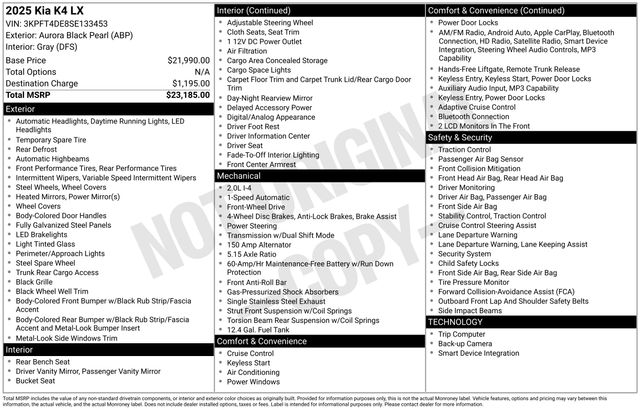 An awesome price considering its low mileage! This 4 door, 5 passenger sedan just recently passed the 20,000 mile mark! Kia paid particular attention to efficiency and practicality with the following features: variably intermittent wipers, an overhead console, and 1-touch window functionality. It features a continuously variable transmission, front-wheel drive, and a 2 liter 4 cylinder engine.