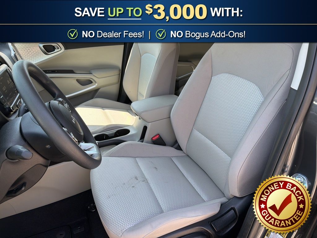 4-Wheel Disc Brakes, 6 Speakers, 6.5J x 16" Alloy Wheels, ABS brakes, Air Conditioning, Apple CarPlay & Android Auto, Auto High-beam Headlights, Brake assist, Bumpers: body-color, Compass, Delay-off headlights, Driver door bin, Driver vanity mirror, Dual front impact airbags, Dual front side impact airbags, Electronic Stability Control, Exterior Parking Camera Rear, Front anti-roll bar, Front Bucket Seats, Front Center Armrest, Front reading lights, Front wheel independent suspension, Fully automatic headlights, Illuminated entry, Low tire pressure warning, Occupant sensing airbag, Outside temperature display, Overhead airbag, Overhead console, Panic alarm, Passenger door bin, Passenger vanity mirror, Power door mirrors, Power steering, Power windows, Radio data system, Radio: AM/FM/MP3/HD Audio System, Rear window defroster, Rear window wiper, Remote keyless entry, Speed control, Speed-sensing steering, Split folding rear seat, Steering wheel mounted audio controls, Tachometer, Telescoping steering wheel, Tilt steering wheel, Traction control, Trip computer, Variably intermittent wipers, Woven & Tricot Cloth Seat Trim. 2025 Kia Soul LX