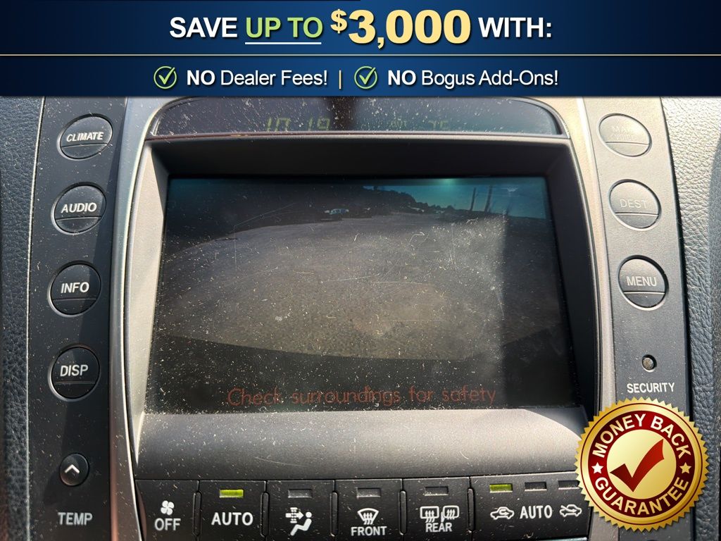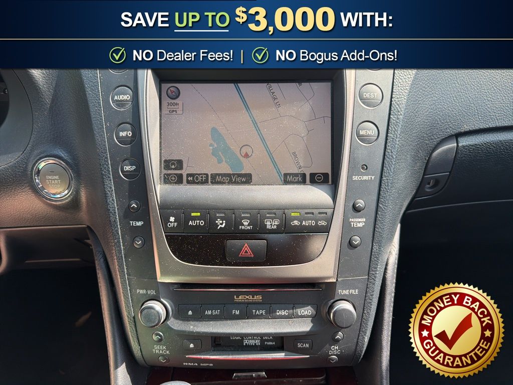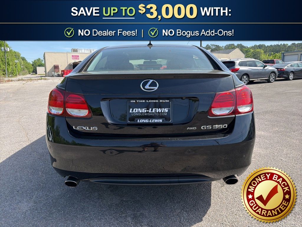 AWD, Leather, 10 Speakers, 17" x 7.5" 10-Spoke Aluminum Alloy Wheels, 4-Wheel Disc Brakes, ABS brakes, Air Conditioning, Alloy wheels, AM/FM radio, Auto tilt-away steering wheel, Auto-dimming door mirrors, Auto-dimming Rear-View mirror, Automatic temperature control, Bodyside moldings, Brake assist, Bumpers: body-color, Cassette, CD player, Compass, Delay-off headlights, Driver door bin, Driver vanity mirror, Dual front impact airbags, Dual front side impact airbags, Electronic Stability Control, Four wheel independent suspension, Front anti-roll bar, Front Bucket Seats, Front Center Armrest, Front dual zone A/C, Front fog lights, Front reading lights, Fully automatic headlights, Garage door transmitter: HomeLink, Genuine wood console insert, Genuine wood door panel insert, Heated door mirrors, Heated Front Bucket Seats, Heated front seats, High-Intensity Discharge Headlights, Illuminated entry, Knee airbag, Leather Shift Knob, Leather steering wheel, Lexus Premium Audio System, Low tire pressure warning, Memory seat, Occupant sensing airbag, Outside temperature display, Overhead airbag, Overhead console, Panic alarm, Passenger door bin, Passenger vanity mirror, Perforated Leather Seat Trim, Power door mirrors, Power driver seat, Power moonroof, Power passenger seat, Power steering, Power windows, Radio data system, Rear anti-roll bar, Rear reading lights, Rear seat center armrest, Rear side impact airbag, Rear window defroster, Remote keyless entry, Security system, Speed control, Speed-sensing steering, Speed-Sensitive Wipers, Steering wheel memory, Steering wheel mounted audio controls, Tachometer, Telescoping steering wheel, Tilt steering wheel, Traction control, Trip computer, Variably intermittent wipers, Voltmeter, AWD, Leather. 2007 Lexus GS 350