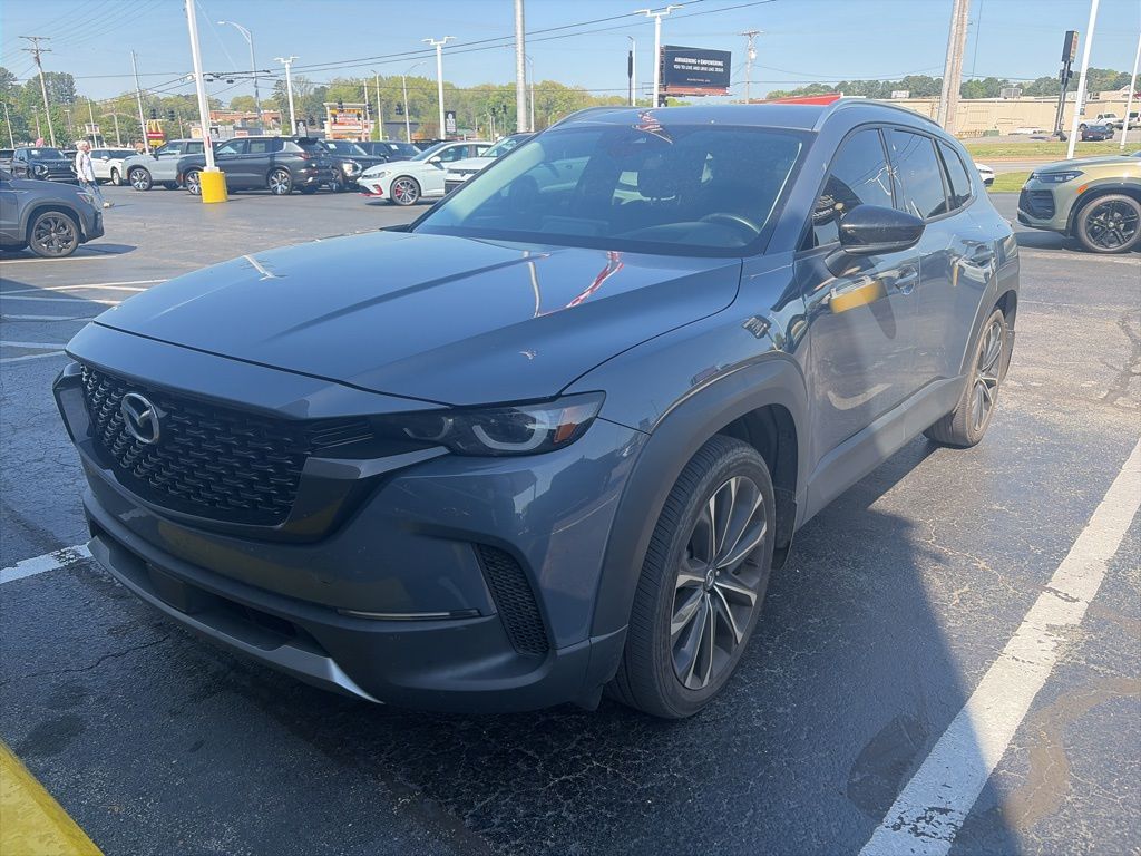 2024 Mazda CX-50 2.5 Turbo Premium Package Polymetal Gray Metallic 2.5 Turbo Premium Package AWD 6-Speed Automatic 2.5L I4 Turbocharged DOHC 16V LEV3-ULEV70 227hp 12 Speakers, 20" x 8J Aluminum Alloy Wheels, 3.841 Axle Ratio, 4-Wheel Disc Brakes, ABS brakes, Air Conditioning, Alloy wheels, AM/FM radio: SiriusXM, AppLink/Apple CarPlay and Android Auto, Auto High-beam Headlights, Auto-dimming Rear-View mirror, Automatic temperature control, Black Lug Nuts & Black Wheel Locks, Brake assist, Bumpers: body-color, Carpet Cargo Mat, Delay-off headlights, Driver door bin, Driver vanity mirror, Dual front impact airbags, Dual front side impact airbags, Electronic Stability Control, Emergency communication system: MAZDA CONNECT, Exterior Parking Camera Rear, Front & Rear Splash Guards, Front anti-roll bar, Front Bucket Seats, Front Center Armrest, Front dual zone A/C, Front reading lights, Front wheel independent suspension, Fully automatic headlights, Garage door transmitter: HomeLink, Heads-Up Display, Heated & Ventilated Front Bucket Seats, Heated door mirrors, Heated front seats, Heated steering wheel, Illuminated entry, Knee airbag, Leather Seat Trim, Leather Shift Knob, Leather steering wheel, Low tire pressure warning, Memory seat, Occupant sensing airbag, Outside temperature display, Overhead airbag, Overhead console, Panic alarm, Passenger door bin, Passenger vanity mirror, Polymetal Gray Metallic Paint Charge, Power door mirrors, Power driver seat, Power Liftgate, Power moonroof, Power passenger seat, Power steering, Power windows, Radio data system, Radio: AM/FM/HD Audio System, Rain sensing wipers, Rear seat center armrest, Rear window defroster, Rear window wiper, Remote keyless entry, Silver Cross Bars, Speed control, Speed-sensing steering, Split folding rear seat, Spoiler, Steering wheel mounted audio controls, Tachometer, Telescoping steering wheel, Tilt steering wheel, Traction control, Trip computer, Turn signal indicator mirrors, Variably intermittent wipers, Ventilated front seats.