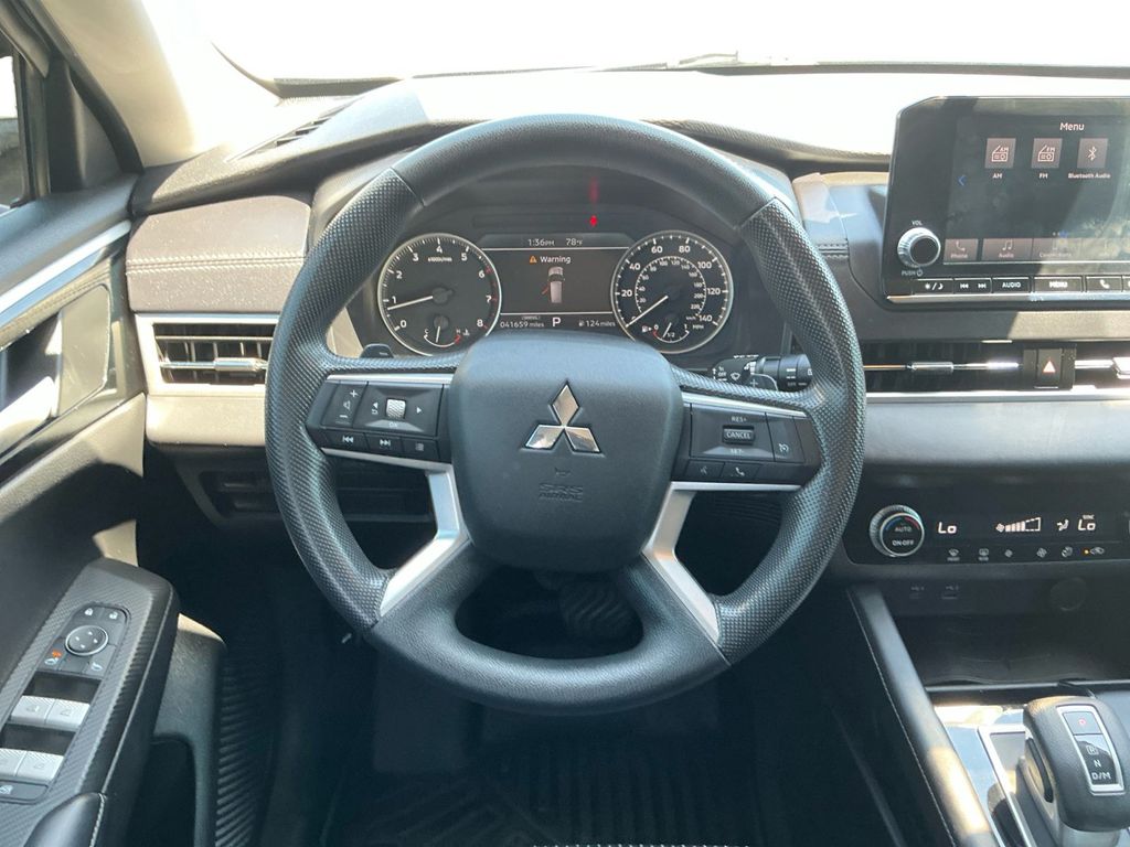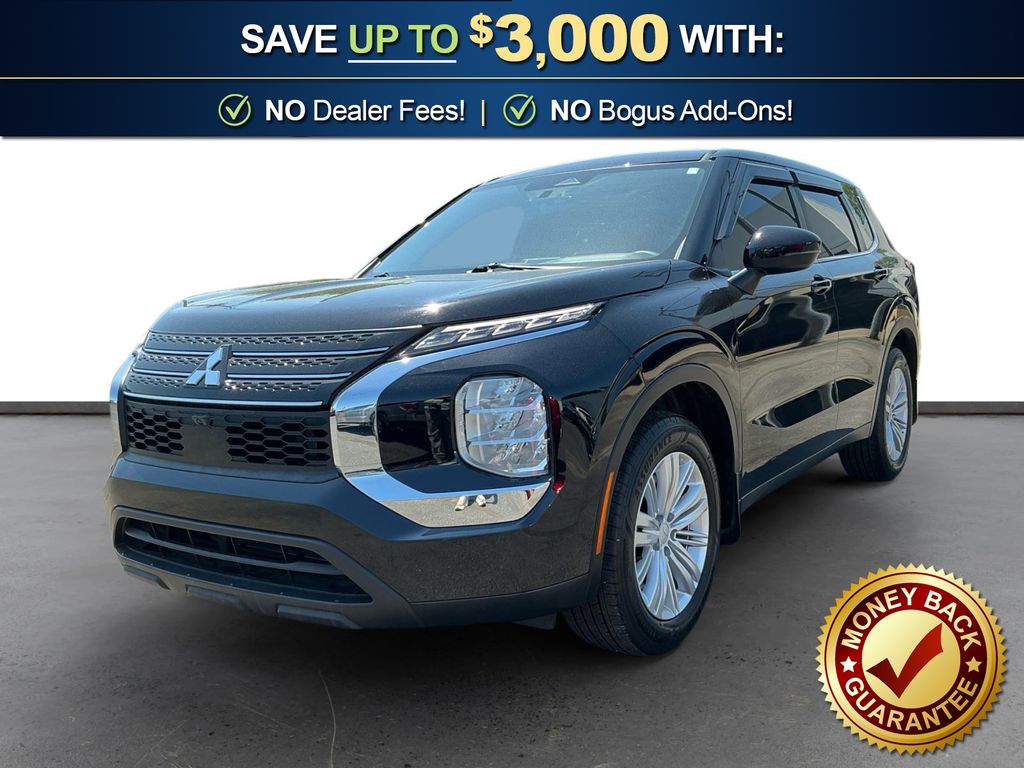 2023 Mitsubishi Outlander ES Labrador Black Pearl ES FWD CVT 2.5L 4-Cylinder DOHC 18" Alloy Wheels, 3rd row seats: split-bench, 4-Wheel Disc Brakes, 5.694 Axle Ratio, 6 Speakers, ABS brakes, Air Conditioning, Alloy wheels, AM/FM radio: SiriusXM, Android Auto & Apple CarPlay, Auto High-beam Headlights, Automatic temperature control, Blind Spot Warning, Brake assist, Bumpers: body-color, Driver door bin, Driver vanity mirror, Dual front impact airbags, Dual front side impact airbags, Electronic Stability Control, Emergency communication system: Mitsubishi Connect w/ 24-month trial, Exterior Parking Camera Rear, Fabric Seat Trim, Four wheel independent suspension, Front anti-roll bar, Front Bucket Seats, Front Center Armrest w/Storage, Front dual zone A/C, Front reading lights, Fully automatic headlights, Illuminated entry, Knee airbag, Low tire pressure warning, Occupant sensing airbag, Outside temperature display, Overhead airbag, Overhead console, Panic alarm, Passenger door bin, Passenger vanity mirror, Power door mirrors, Power steering, Power windows, Radio data system, Radio: AM/FM 8.0" Smartphone Link Display Audio, Rear anti-roll bar, Rear Parking Sensors, Rear seat center armrest, Rear side impact airbag, Rear window defroster, Rear window wiper, Reclining 3rd row seat, Remote keyless entry, Security system, Speed control, Speed-Sensitive Wipers, Split folding rear seat, Spoiler, Steering wheel mounted audio controls, Tachometer, Telescoping steering wheel, Tilt steering wheel, Traction control, Trip computer, Turn signal indicator mirrors, Variably intermittent wipers.