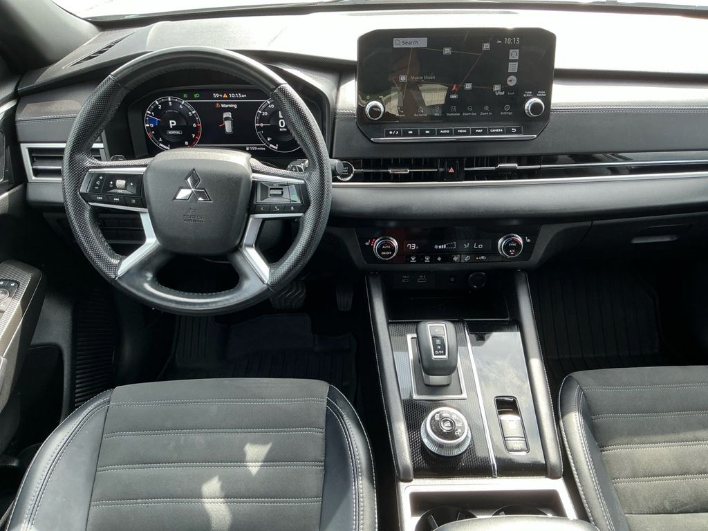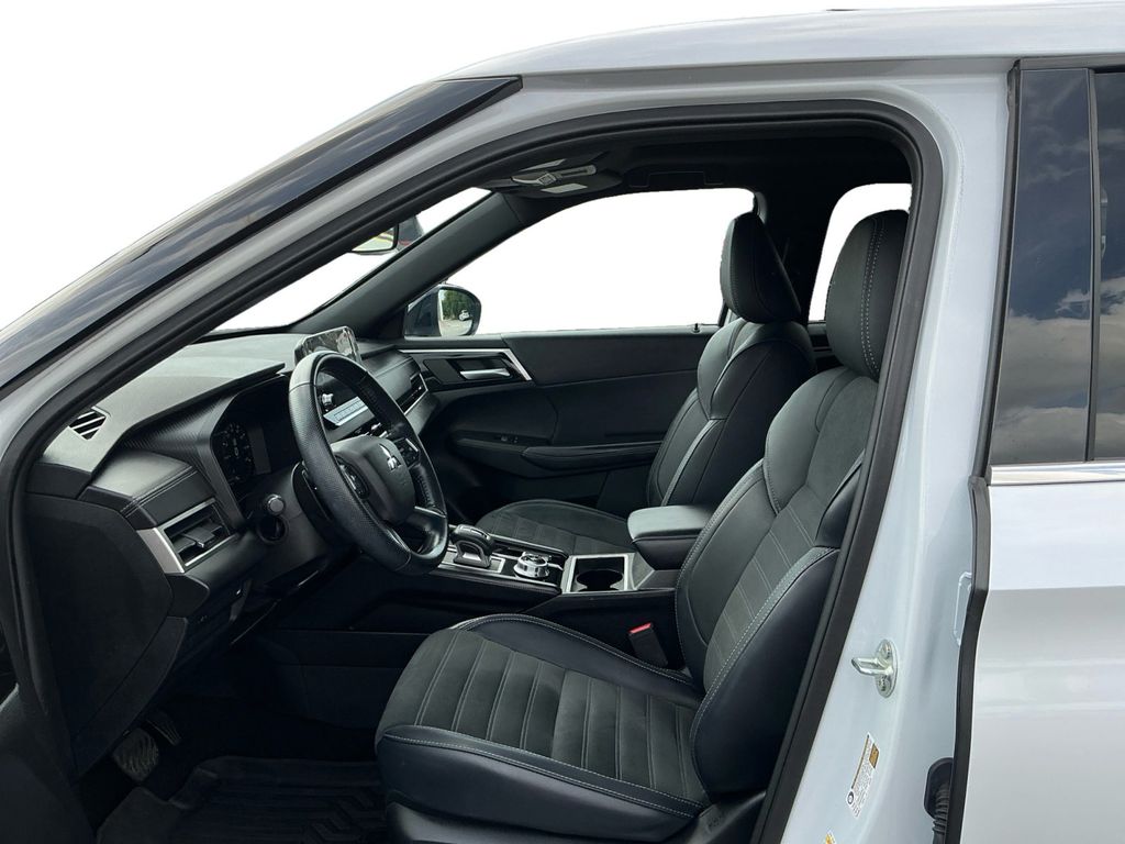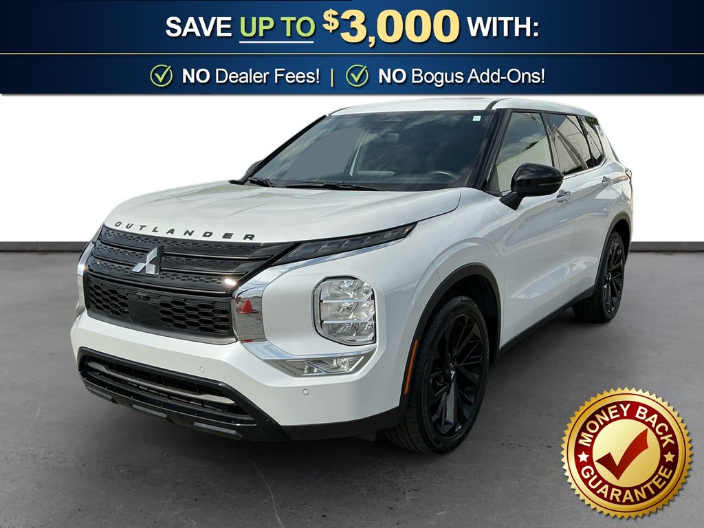 2024 Mitsubishi Outlander SE Black Edition w/Pano Roof White Diamond SE Black Edition w/Pano Roof FWD CVT 2.5L 4-Cylinder DOHC 3rd row seats: split-bench, 4-Wheel Disc Brakes, 5.694 Axle Ratio, 6 Speakers, ABS brakes, Air Conditioning, Alloy wheels, AM/FM radio: SiriusXM, Android Auto & Apple CarPlay, Auto High-beam Headlights, Automatic temperature control, Brake assist, Bumpers: body-color, Driver door bin, Driver vanity mirror, Dual front impact airbags, Dual front side impact airbags, Electronic Stability Control, Emergency communication system: Mitsubishi Connect w/ 24-month trial, Exterior Parking Camera Rear, Four wheel independent suspension, Front anti-roll bar, Front Bucket Seats, Front Center Armrest w/Storage, Front dual zone A/C, Front fog lights, Front reading lights, Fully automatic headlights, Heated door mirrors, Heated Front Bucket Seats, Heated front seats, Illuminated entry, Knee airbag, Leather Shift Knob, Leather steering wheel, Low tire pressure warning, Navigation System, Occupant sensing airbag, Outside temperature display, Overhead airbag, Overhead console, Panic alarm, Passenger door bin, Passenger vanity mirror, Power door mirrors, Power driver seat, Power Liftgate, Power steering, Power windows, Radio data system, Radio: AM/FM 9.0" Navigation w/Smartphone Link, Rain sensing wipers, Rear anti-roll bar, Rear seat center armrest, Rear side impact airbag, Rear window defroster, Rear window wiper, Reclining 3rd row seat, Remote keyless entry, Security system, Speed control, Speed-Sensitive Wipers, Split folding rear seat, Spoiler, Steering wheel mounted audio controls, Synthetic Leather Seat Trim, Tachometer, Telescoping steering wheel, Tilt steering wheel, Traction control, Trip computer, Turn signal indicator mirrors, Variably intermittent wipers.