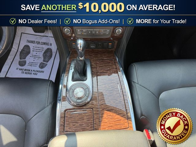 - Simulated wood/metal-look center console trim