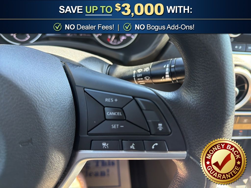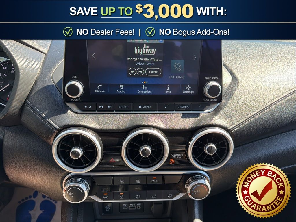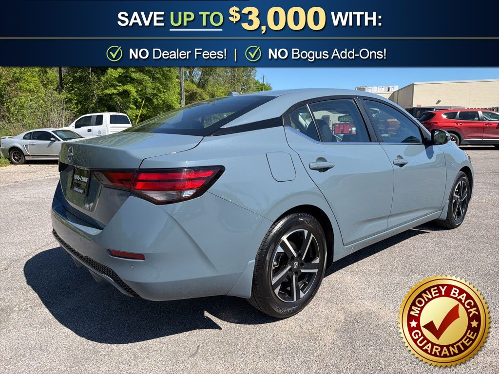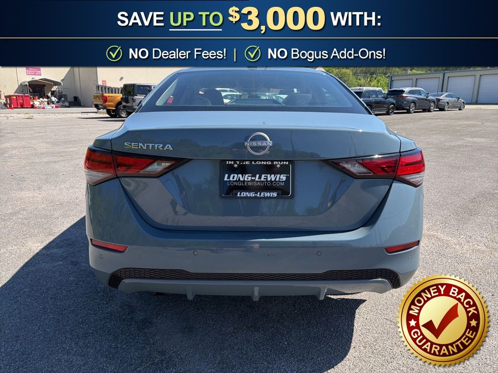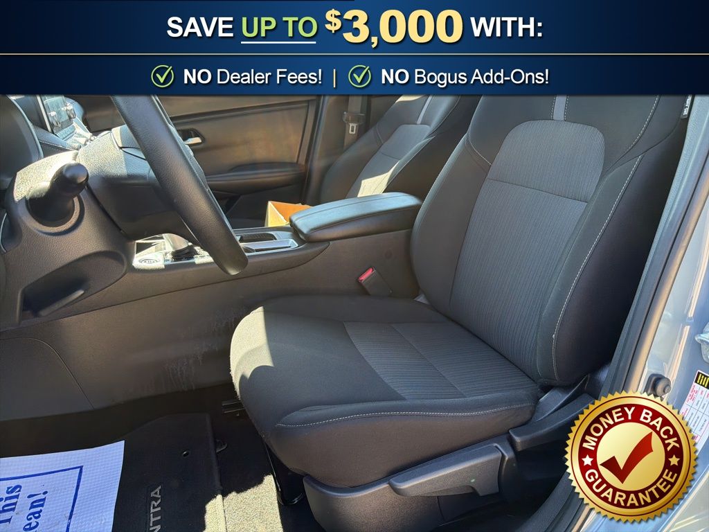 CVT with Xtronic, Charcoal Cloth, 16" Alloy Wheels, 4-Wheel Disc Brakes, 8 Speakers, ABS brakes, Air Conditioning, Alloy wheels, AM/FM radio: SiriusXM, Auto High-beam Headlights, Blind Spot Warning, Body Colored Splash Guards (4-Piece), Brake assist, Bumpers: body-color, Carpeted Floor Mats with Trunk Mat, Clear Rear Bumper Protector, Delay-off headlights, Door Sill Plates, Driver door bin, Driver vanity mirror, Dual front impact airbags, Dual front side impact airbags, Electronic Stability Control, Four wheel independent suspension, Front anti-roll bar, Front Bucket Seats, Front Center Armrest, Front reading lights, Fully automatic headlights, Illuminated entry, Knee airbag, Low tire pressure warning, NissanConnect featuring Apple CarPlay and Android Auto, Occupant sensing airbag, Outside temperature display, Overhead airbag, Overhead console, Panic alarm, Passenger door bin, Passenger vanity mirror, Power door mirrors, Power steering, Power windows, Premium Paint, Radio data system, Radio: AM/FM with RDS/MP3/Aux-in, Rear anti-roll bar, Rear Parking Sensors, Rear side impact airbag, Rear window defroster, Remote keyless entry, Security system, Speed control, Speed-sensing steering, Split folding rear seat, Steering wheel mounted audio controls, Tachometer, Telescoping steering wheel, Tilt steering wheel, Traction control, Trip computer, Upgraded Cloth Seat Trim, Variably intermittent wipers, CVT with Xtronic, Charcoal Cloth. 2025 Nissan Sentra SV