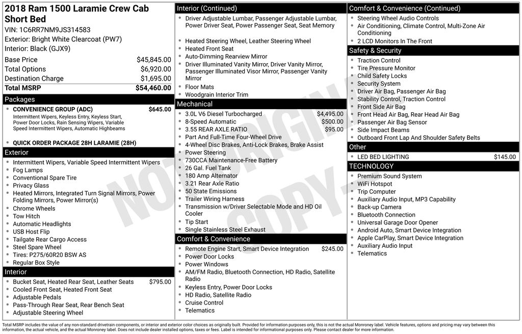 2018 Ram 1500 Laramie Truck Crew Cab V-6 cyl