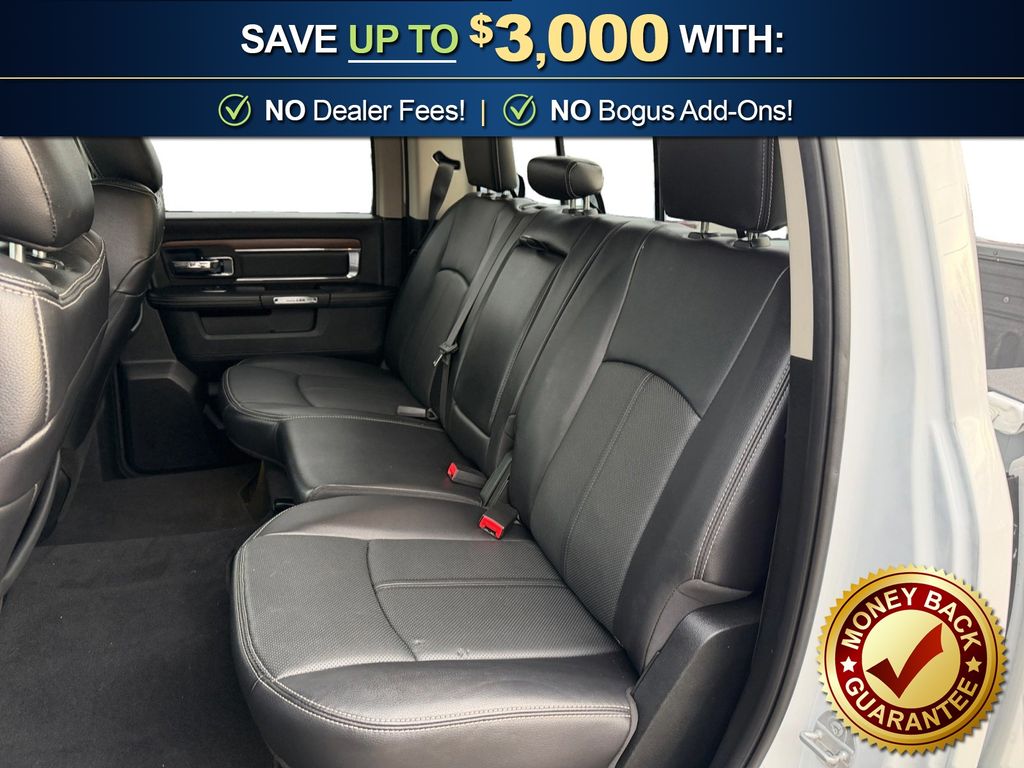 1-Yr SiriusXM Guardian Trial, 115V Auxiliary Power Outlet, 20" x 9" Chrome Clad Aluminum Wheels, 4-Wheel Disc Brakes, 6 Speakers, 8.4" Touchscreen Display, 9 Alpine Speakers w/Subwoofer (DISC), ABS brakes, Active Grille Shutters, Adjustable pedals, Air Conditioning, Alloy wheels, AM/FM radio: SiriusXM, Apple CarPlay, Apple CarPlay/Android Auto, Audio Jack Input for Mobile Devices, Audio memory, Auto High Beam Headlamp Control, Auto-dimming door mirrors, Auto-dimming Rear-View mirror, Automatic temperature control, Brake assist, Bumpers: chrome, Center Hub, Compass, Convenience Group, Delay-off headlights, Driver door bin, Driver vanity mirror, Dual front impact airbags, Dual front side impact airbags, Electronic Shift, Electronic Stability Control, Emergency communication system: SiriusXM Guardian, Folding Flat Load Floor Storage, Front anti-roll bar, Front Center Armrest w/Storage, Front dual zone A/C, Front fog lights, Front reading lights, Front wheel independent suspension, Fully automatic headlights, Garage door transmitter, Google Android Auto, GPS Antenna Input, HD Radio, Heated door mirrors, Heated Front Seats, Heated front seats, Heated steering wheel, High Back Seats, Illuminated entry, Integrated Voice Command w/Bluetooth, Keyless Enter-N-Go, Leather steering wheel, Leather Trim 40/20/40 Bench Seat, LED Bed Lighting, Low tire pressure warning, Media Hub (2 USB, AUX), Memory seat, Occupant sensing airbag, Outside temperature display, Overhead airbag, Overhead console, Panic alarm, ParkView Rear Back-Up Camera, Passenger door bin, Passenger vanity mirror, Pedal memory, Power 10-Way Memory Driver & 6-Way Passenger Seats, Power door mirrors, Power driver seat, Power passenger seat, Power steering, Power windows, Quick Order Package 28H Laramie, Radio data system, Radio: Uconnect 4C w/8.4" Display, Rain Sensitive Windshield Wipers, Rear 60/40 Split Folding Seat, Rear anti-roll bar, Rear seat center armrest, Rear step bumper, Remote keyless entry, Remote Proximity Keyless Entry, Remote Start System, Remote USB Port, Security system, SiriusXM Satellite Radio, Speed control, Split folding rear seat, Steering wheel mounted audio controls, Tachometer, Tilt steering wheel, Tip Start, Traction control, Trip computer, Turn signal indicator mirrors, USB Host Flip, Variably intermittent wipers, Ventilated Front Seats, Ventilated front seats, Voltmeter. 2018 Ram 1500 Laramie